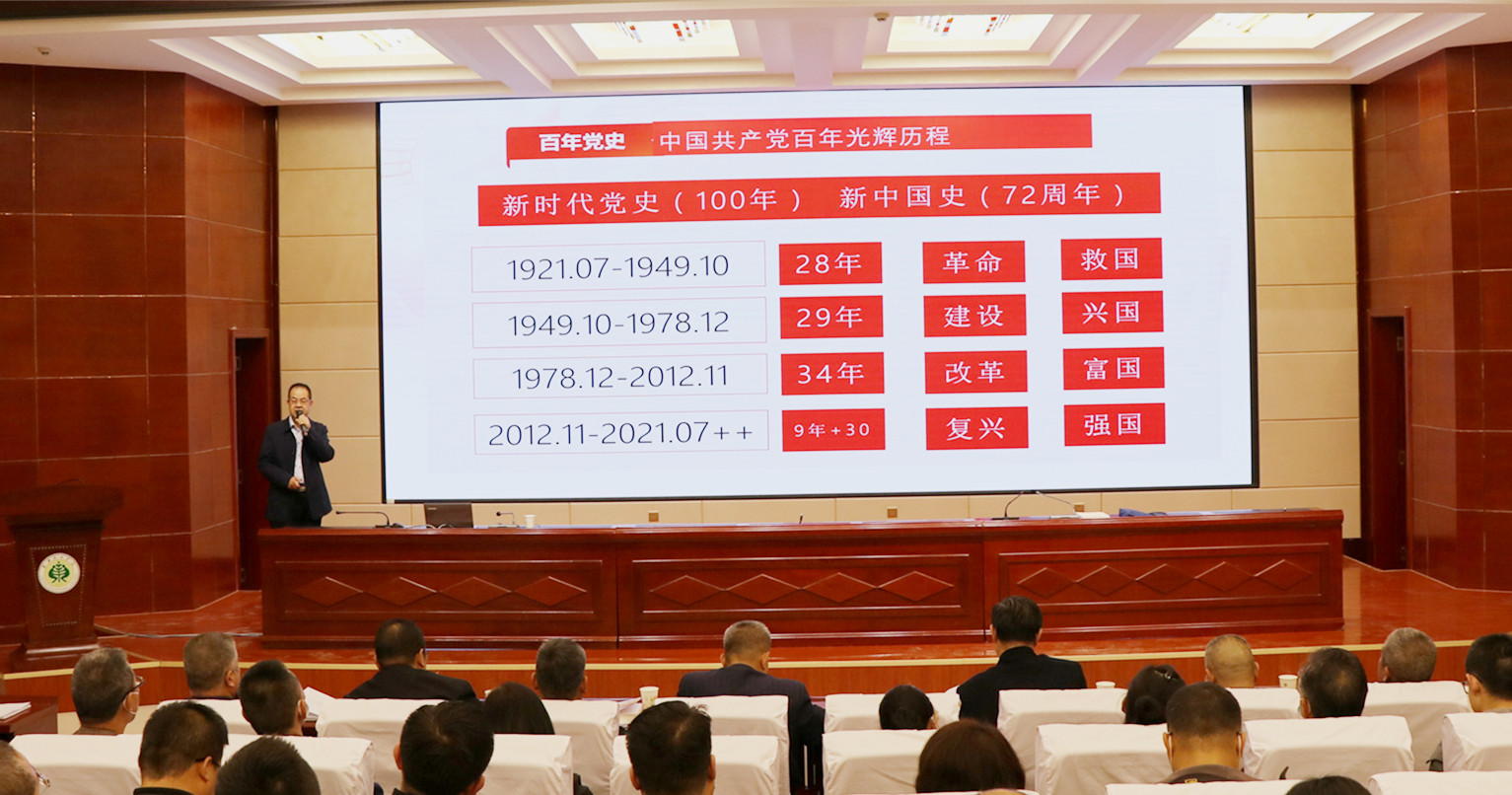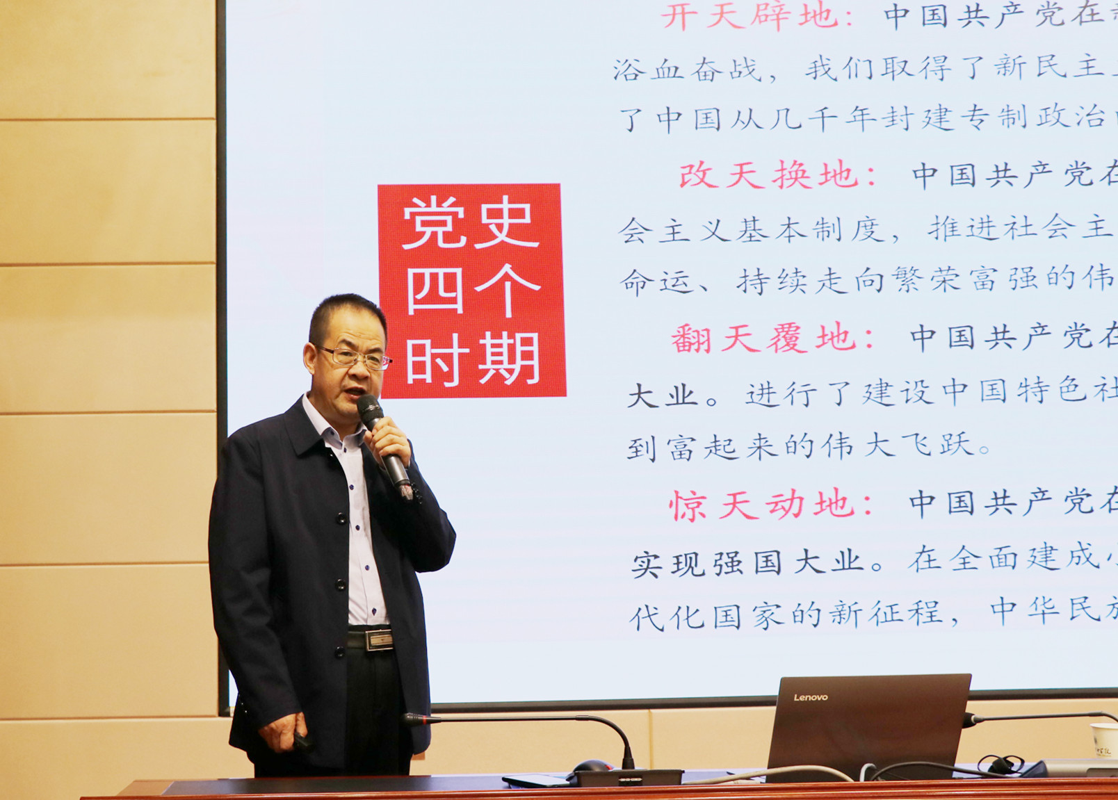 報告中,翟存祥教授帶領大家再次學習了習近平總書記在黨史學習教育動員大會上的講話,進一步明確了開展黨史學習教育的重大意義。報告將中國共產(chǎn)黨百年歷程分為“開天辟地,新民主主義革命時期;改天換地,社會主義革命和建設時期;翻天覆地,改革開放和現(xiàn)代化建設時期;驚天動地,中國特色社會主義新時代”四個歷史發(fā)展階段。從只有中國共產(chǎn)黨才能拯救中國,中國人民站起來了;只有中國共產(chǎn)黨才能發(fā)展中國,中國人民富起來了;只有中國共產(chǎn)黨才能治理中國,中國人民強起來了;堅持中國共產(chǎn)黨的全面領導,新中國取得巨大成就等四個方面深刻闡述了中國共產(chǎn)黨百年奮斗的光輝歷程和取得的偉大成就,系統(tǒng)梳理總結了黨帶領人民推進革命、建設、改革的寶貴經(jīng)驗和長期奮斗中鑄就的偉大精神。