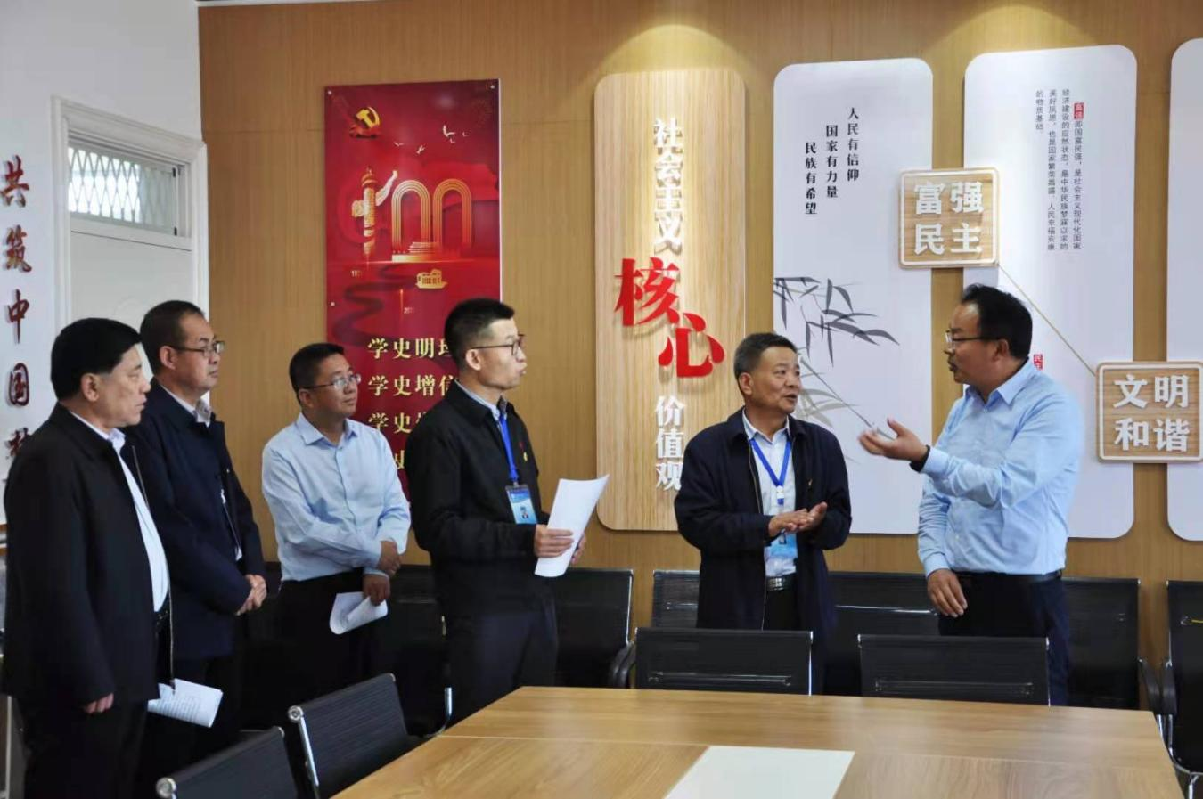 關(guān)維斌來到能源科技樓1樓觀看學(xué)院展板,聽取學(xué)院黨委書記、院長趙明匯報介紹校黨建工作和學(xué)科建設(shè)成就。在能源工程系黨員活動室、創(chuàng)新創(chuàng)業(yè)中心、馬克思主義學(xué)院與師生交流互動,并盛情邀請該院馬克思主義學(xué)院學(xué)科帶頭教師為市委組織部干部講授黨史。
