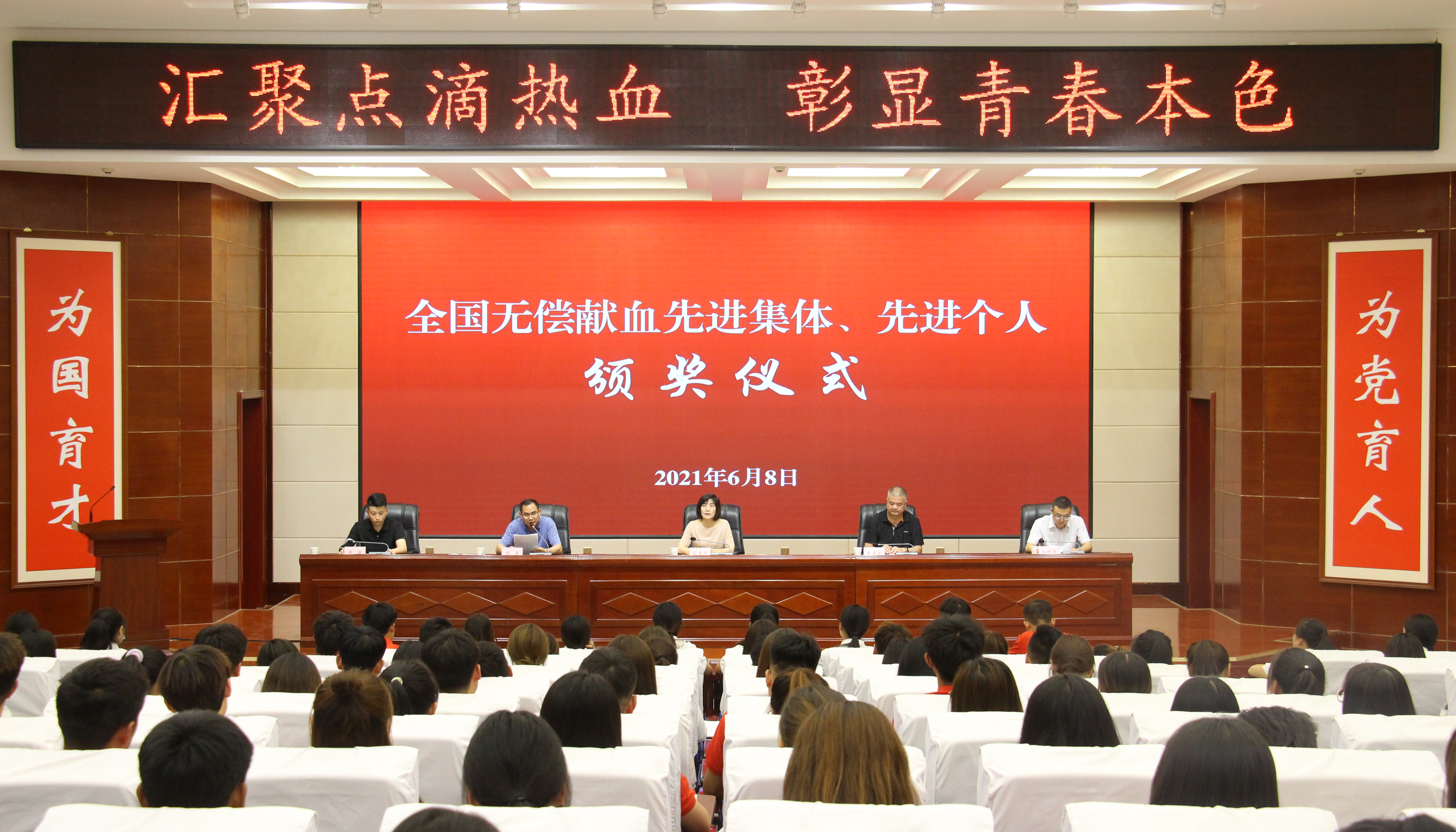 6月8日下午,武威市中心血站、武威市紅十字會(huì)在學(xué)院菁英廳召開全國無償獻(xiàn)血先進(jìn)集體、先進(jìn)個(gè)人頒獎(jiǎng)儀式。武威市中心血站站長蔡清華,武威市紅十字會(huì)專職副會(huì)長張勇,學(xué)院黨委委員、副院長王守云出席頒獎(jiǎng)儀式,學(xué)院獻(xiàn)血志愿者代表220人參加活動(dòng)。儀式由學(xué)生工作處、院團(tuán)委負(fù)責(zé)人高鵬堂主持。