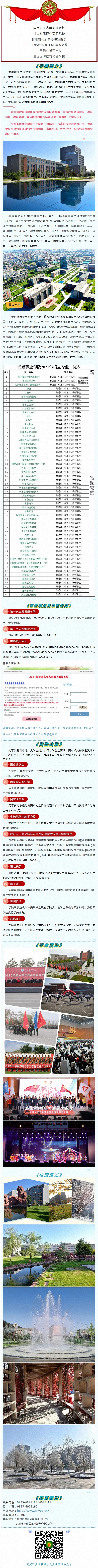 武威職業(yè)學(xué)院2021年中職對口升學(xué)、普通高考招生簡章