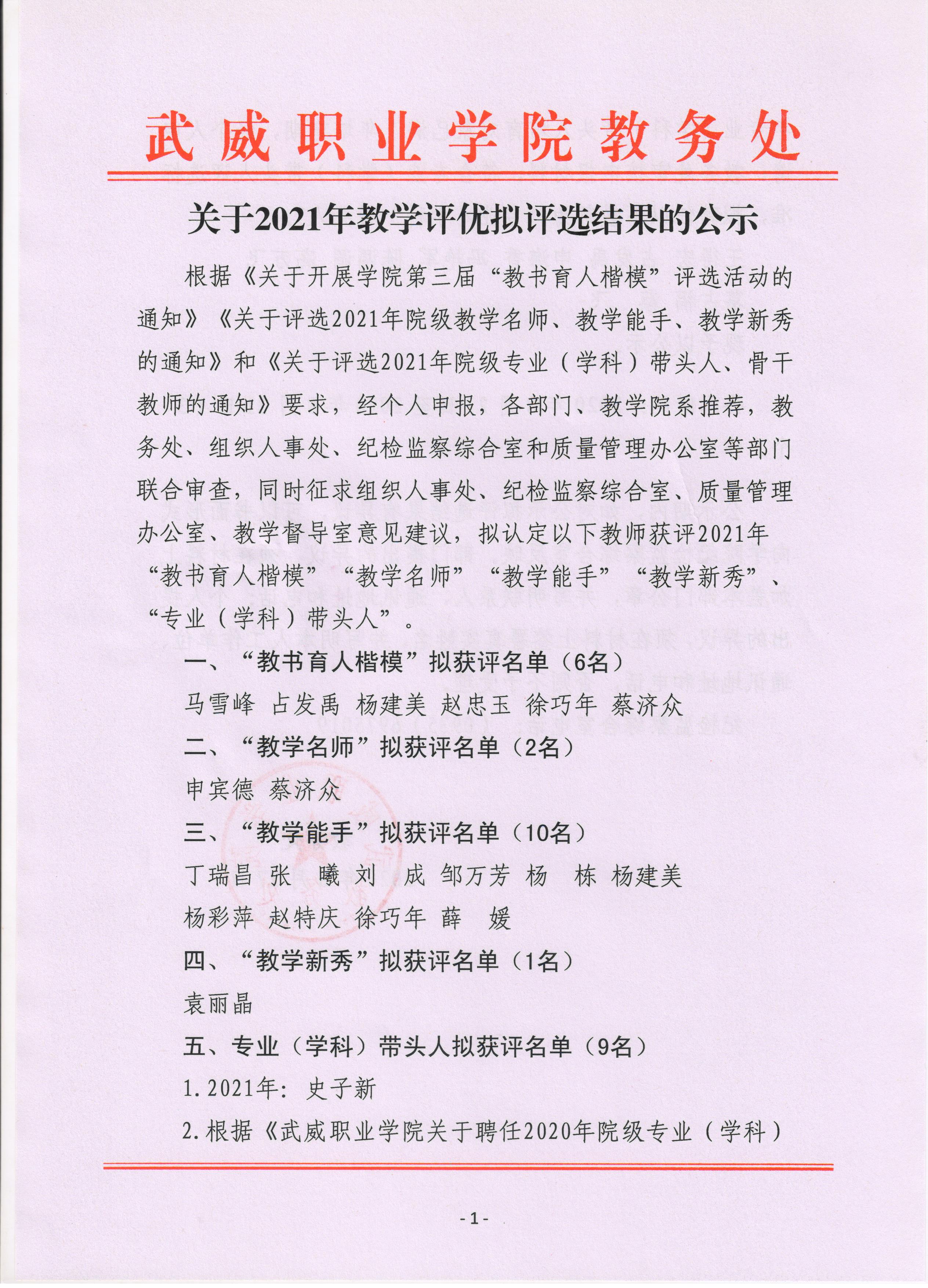 關(guān)于教學評優(yōu)擬評選結(jié)果的公示