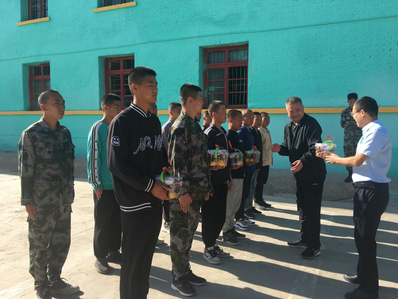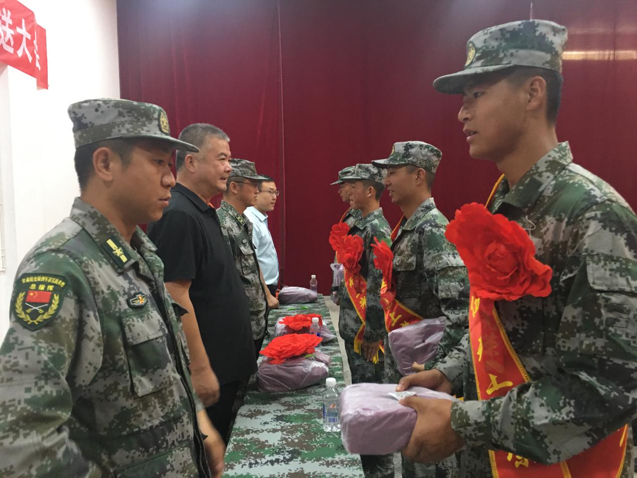 王守云詢(xún)問(wèn)了同學(xué)們的近期訓(xùn)練、生活情況,為同學(xué)們送上了中秋節(jié)慰問(wèn)品,并代表學(xué)院向應(yīng)征入伍的同學(xué)表示祝賀。