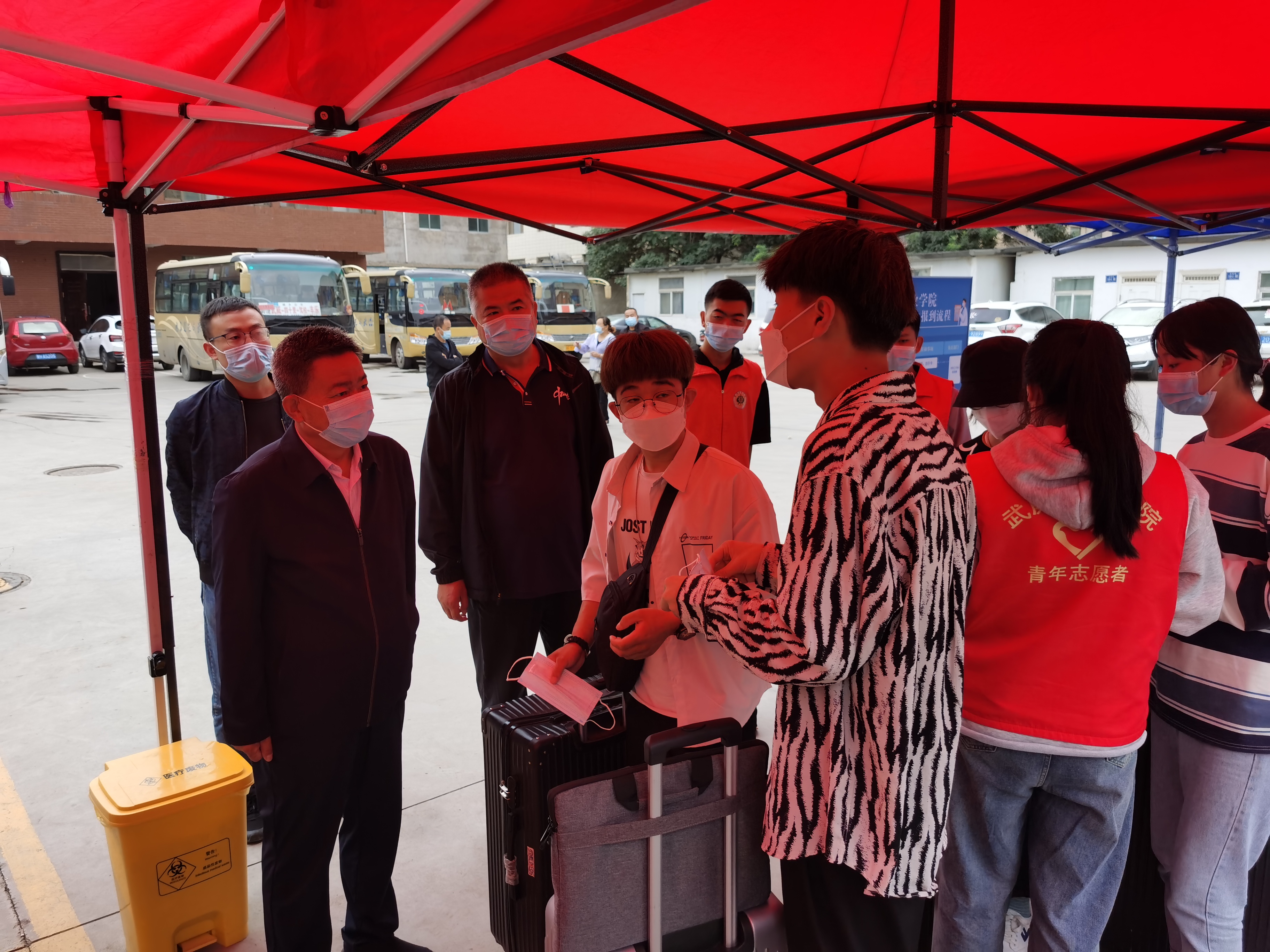 學(xué)院領(lǐng)導(dǎo)高度重視迎新工作,9月3日上午,學(xué)院黨委書(shū)記、院長(zhǎng)趙明,黨委委員、副院長(zhǎng)王守云前往火車站接站點(diǎn)、經(jīng)緯樓核酸檢測(cè)點(diǎn)、迎新報(bào)到現(xiàn)場(chǎng)、新生宿舍等地看望入學(xué)新生,慰問(wèn)了工作人員和志愿者,了解新生報(bào)到注冊(cè)情況,并與2021級(jí)新生及家長(zhǎng)親切交談。趙明詳細(xì)詢問(wèn)新生的家鄉(xiāng)、專業(yè)、生活等情況,勉勵(lì)同學(xué)們要珍惜大學(xué)時(shí)光,盡快融入大學(xué)生活,刻苦學(xué)習(xí),學(xué)有所成。