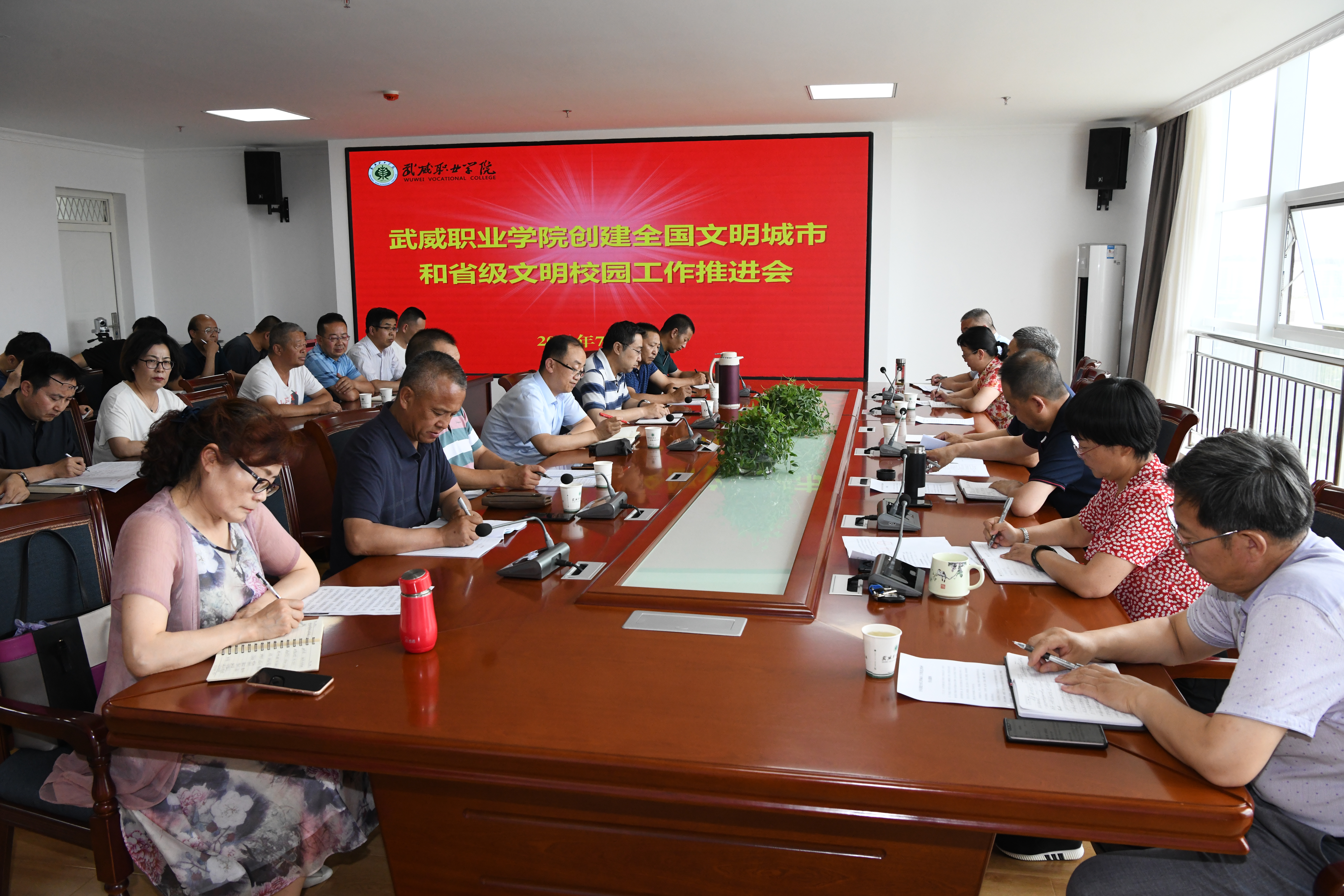 7月6日下午,學(xué)院召開創(chuàng)建全國文明城市和省級文明校園工作推進(jìn)會議。會議傳達(dá)學(xué)習(xí)全市創(chuàng)建第七屆全國文明城市工作推進(jìn)會精神,通報學(xué)院創(chuàng)建全國文明城市和省級文明校園中存在的問題,安排部署下一階段的創(chuàng)建工作。學(xué)院領(lǐng)導(dǎo)班子成員、中層干部和各部門、教學(xué)院系主要負(fù)責(zé)人參加了會議。