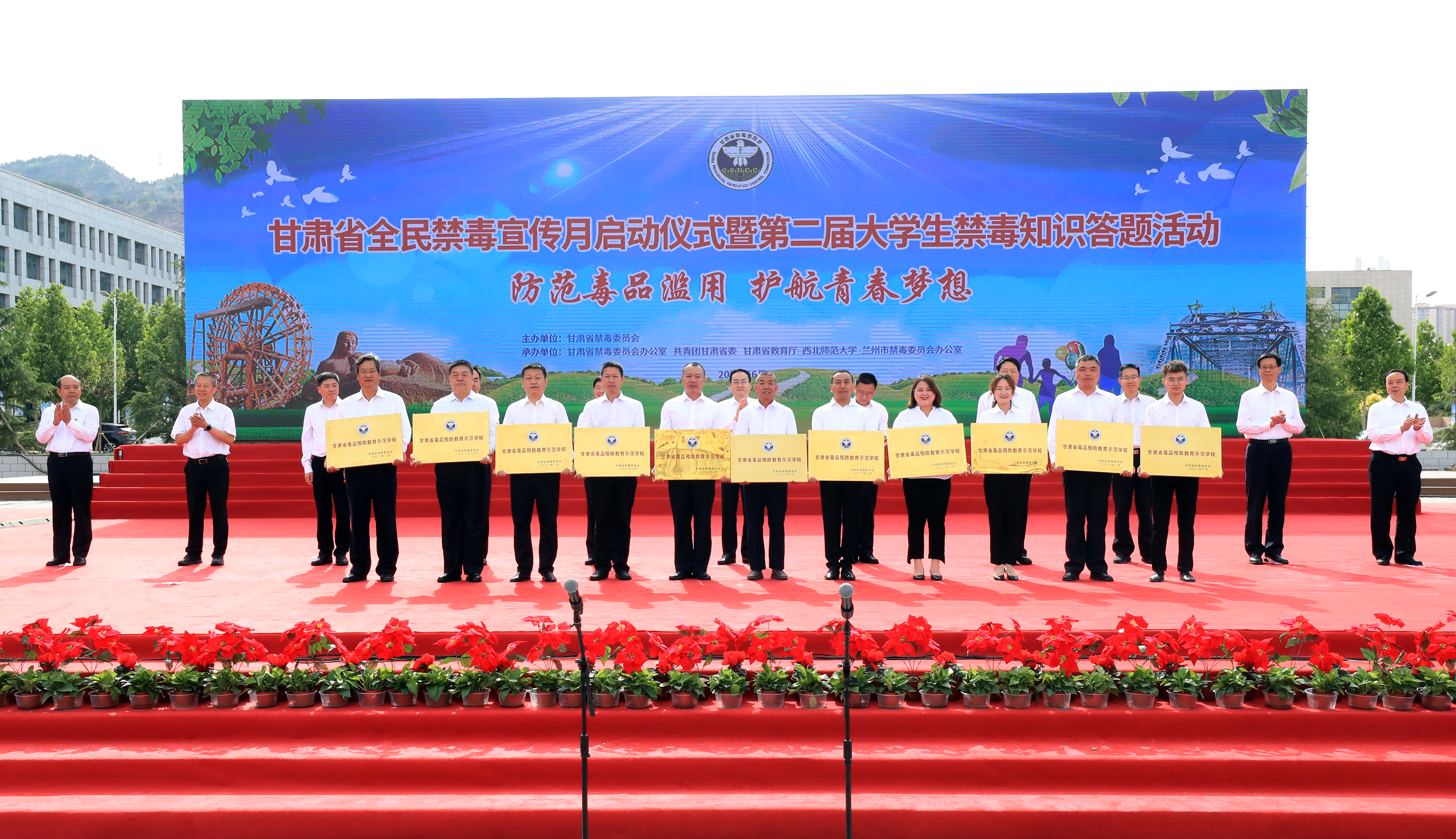 正值全院上下深入推進(jìn)黨史學(xué)習(xí)教育之時(shí),在6月8日上午舉辦的全省“防范毒品濫用·護(hù)航青春夢(mèng)想”為主題的甘肅省全民禁毒宣傳月啟動(dòng)儀式暨第二屆大學(xué)生禁毒知識(shí)答題活動(dòng)啟動(dòng)儀式上,學(xué)院被命名表彰為“甘肅省毒品預(yù)防教育示范學(xué)?!薄?/p>