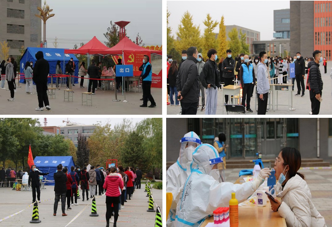 學(xué)院5個(gè)核酸檢測點(diǎn)對(duì)校內(nèi)學(xué)生、教職工、離退休教職工、臨聘人員、校內(nèi)務(wù)工人員、校內(nèi)經(jīng)營戶、校內(nèi)居住教職工家屬進(jìn)行了全員檢測采樣,做到應(yīng)檢必檢、應(yīng)檢全檢,不漏一人,當(dāng)日完成核酸檢測量7291人。