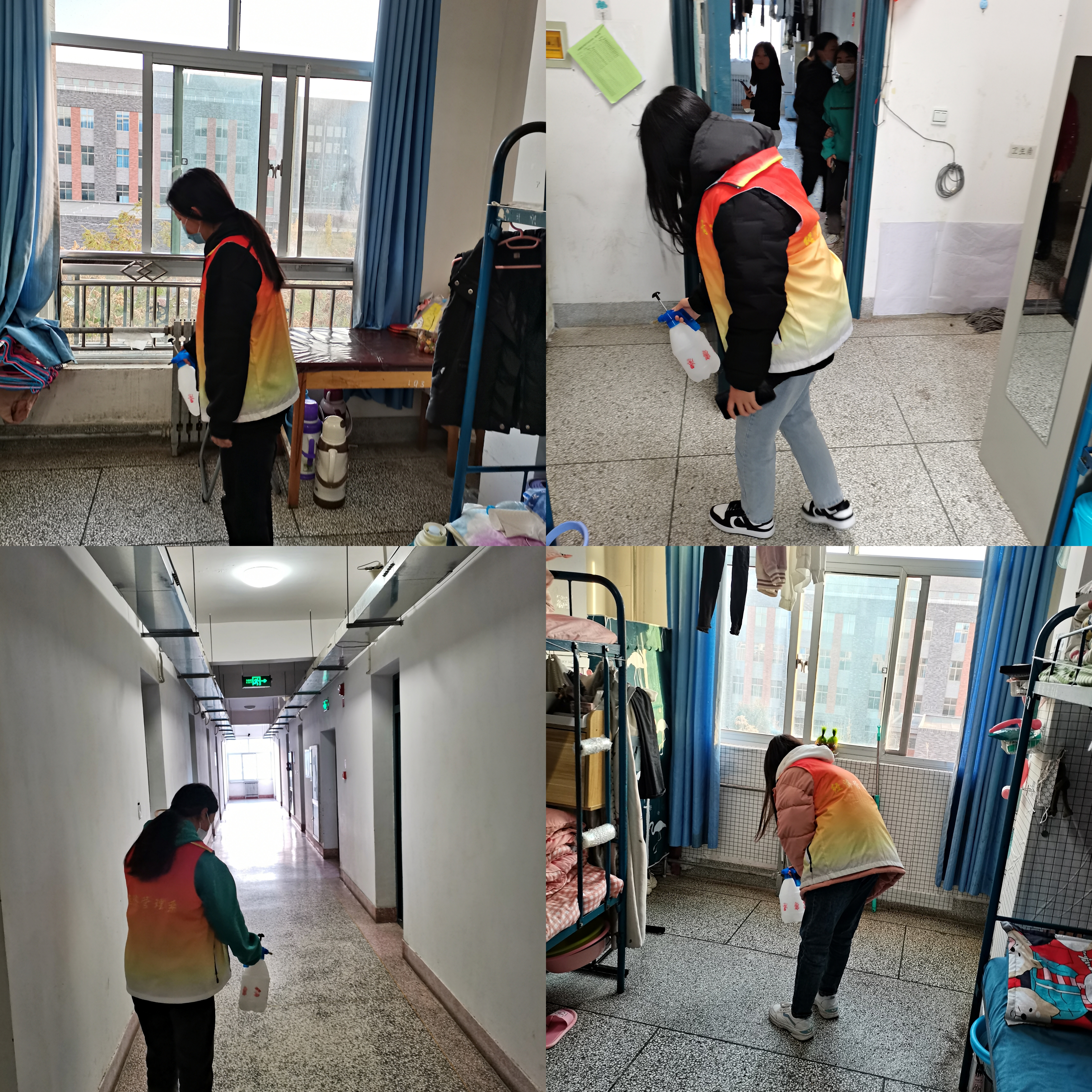 為切實抓好宿舍及公共區(qū)域防控消殺工作,營造安全舒適的學習生活環(huán)境,志愿者協(xié)會根據(jù)不同職能劃分為7個小組,按照“一天兩次”消殺頻率持續(xù)對經(jīng)緯樓、3號學生公寓等宿舍樓內(nèi)的學生宿舍進行通風消毒工作,重點對宿舍地面、床底、門角處等位置進行全方位、多角度消毒,盡量做到消殺不留死角。同時,志愿者還通過網(wǎng)絡平臺學習疫情防控措施相關知識,并在消殺過程中為同學們普及疫情防控知識,全面加強宣傳引導,幫助廣大師生在第一時間了解防疫資訊,有效杜絕謠言傳播,確保廣大師生情緒穩(wěn)定。