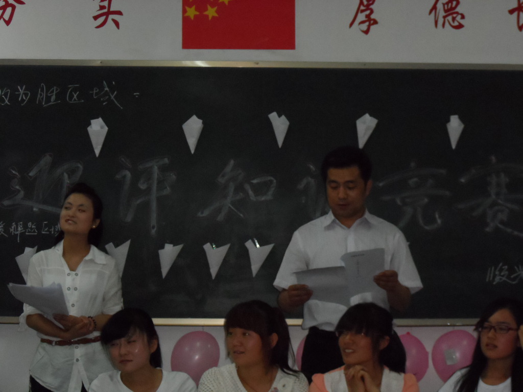 比賽開始前顏老師對本次評估工作向同學(xué)們提出了要求,同時(shí)表示了對此次競賽的充分肯定。比賽以“校園評估知識”為主題,共分為五個(gè)環(huán)節(jié)。當(dāng)主持人宣布第一環(huán)節(jié)“必答題”的比賽開始后,場上緊張激烈的較量便從未停止過,各位選手更是思維敏捷,回答嚴(yán)絲合縫。第二環(huán)節(jié)“是非題”各參賽隊(duì)緊追不舍,陣陣掌聲過后,迎來了第三環(huán)節(jié)“搶答題”的比賽,選手們以平時(shí)積累的大量知識和默契的配合征服了在場的所有人。在后兩個(gè)環(huán)節(jié)“風(fēng)險(xiǎn)題”,和“選答題”中,有趣的知識,嚴(yán)密的思維被同學(xué)們展現(xiàn)的淋漓盡致,陣陣掌聲在教室經(jīng)久不息。