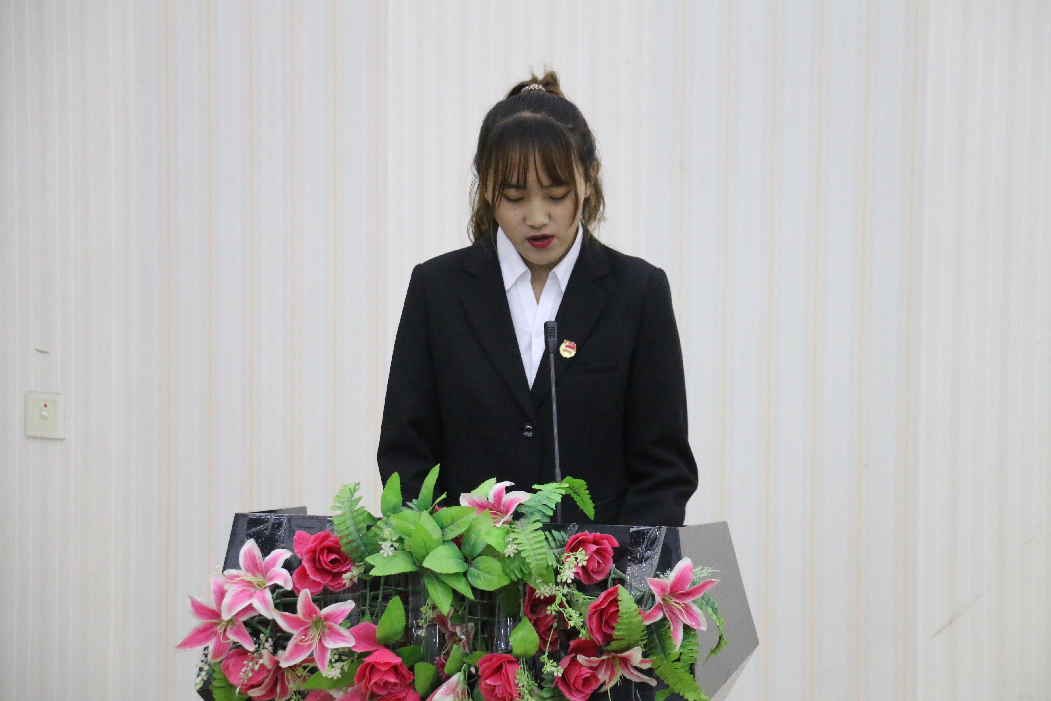 藥學系第十屆分團委副書記張婷婷進行工作總結,她希望新一屆學生干部能思想統(tǒng)一,有高度的政治覺悟,思想上與我系黨總支保持一致,行動上能快速敏捷,做我系黨總支意圖的具體執(zhí)行者和實施者,使我們的學生干部真正成為能干事會干事的優(yōu)秀群體。希望我們上一屆的工作經(jīng)驗和總結能為新一屆藥學系分團委和學生會帶來幫助。