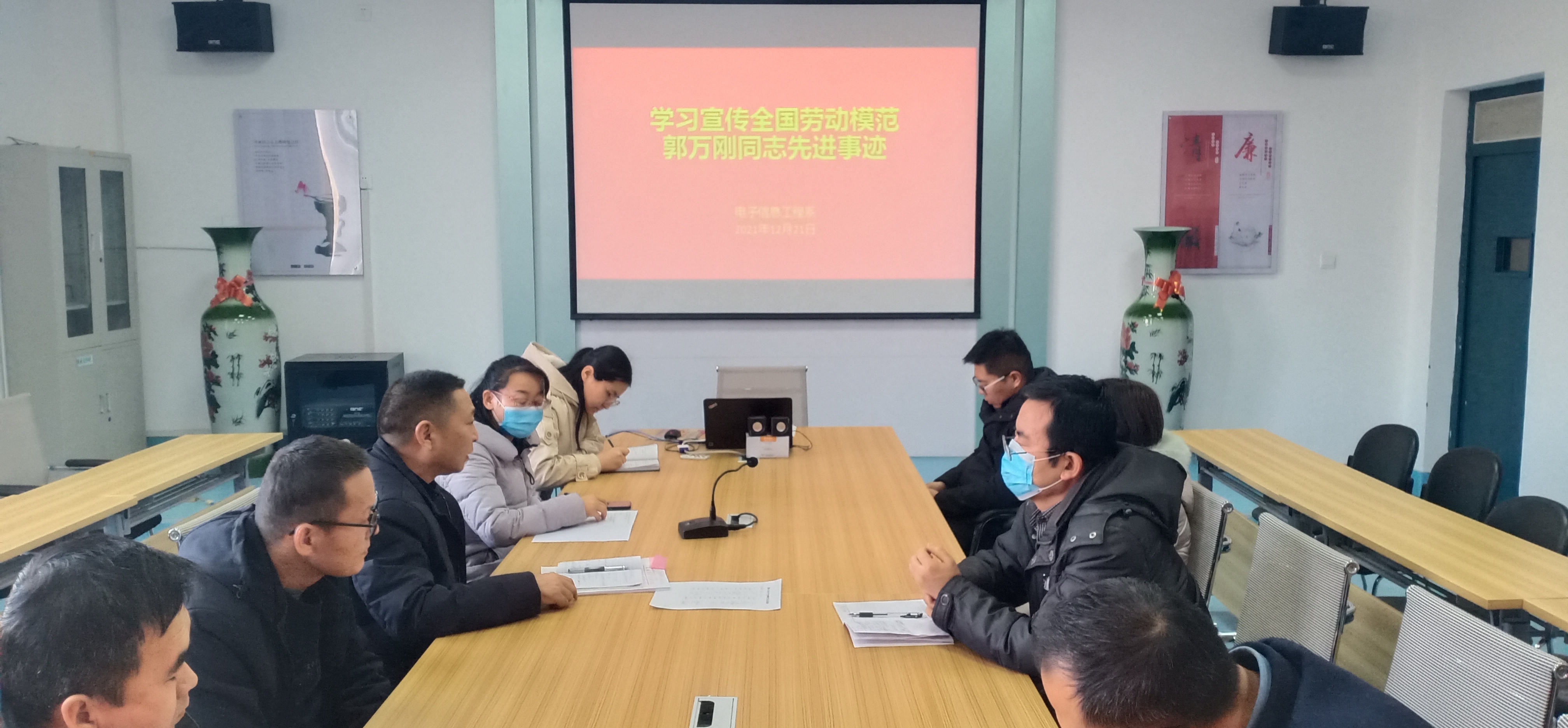 12月23日下午,電子信息工程系組織全體教師在明德樓409會(huì)議室學(xué)習(xí)全國(guó)勞動(dòng)模范郭萬(wàn)剛同志先進(jìn)事跡。