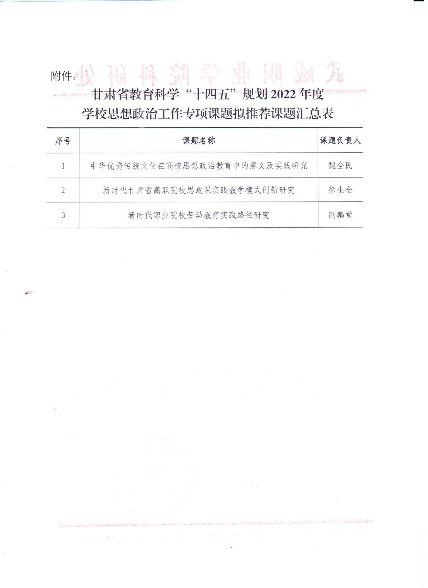 關(guān)于甘肅省教育科學(xué)“十四五”規(guī)劃2022年度學(xué)校思想政治工作專項(xiàng)課題推薦評審結(jié)果的公示