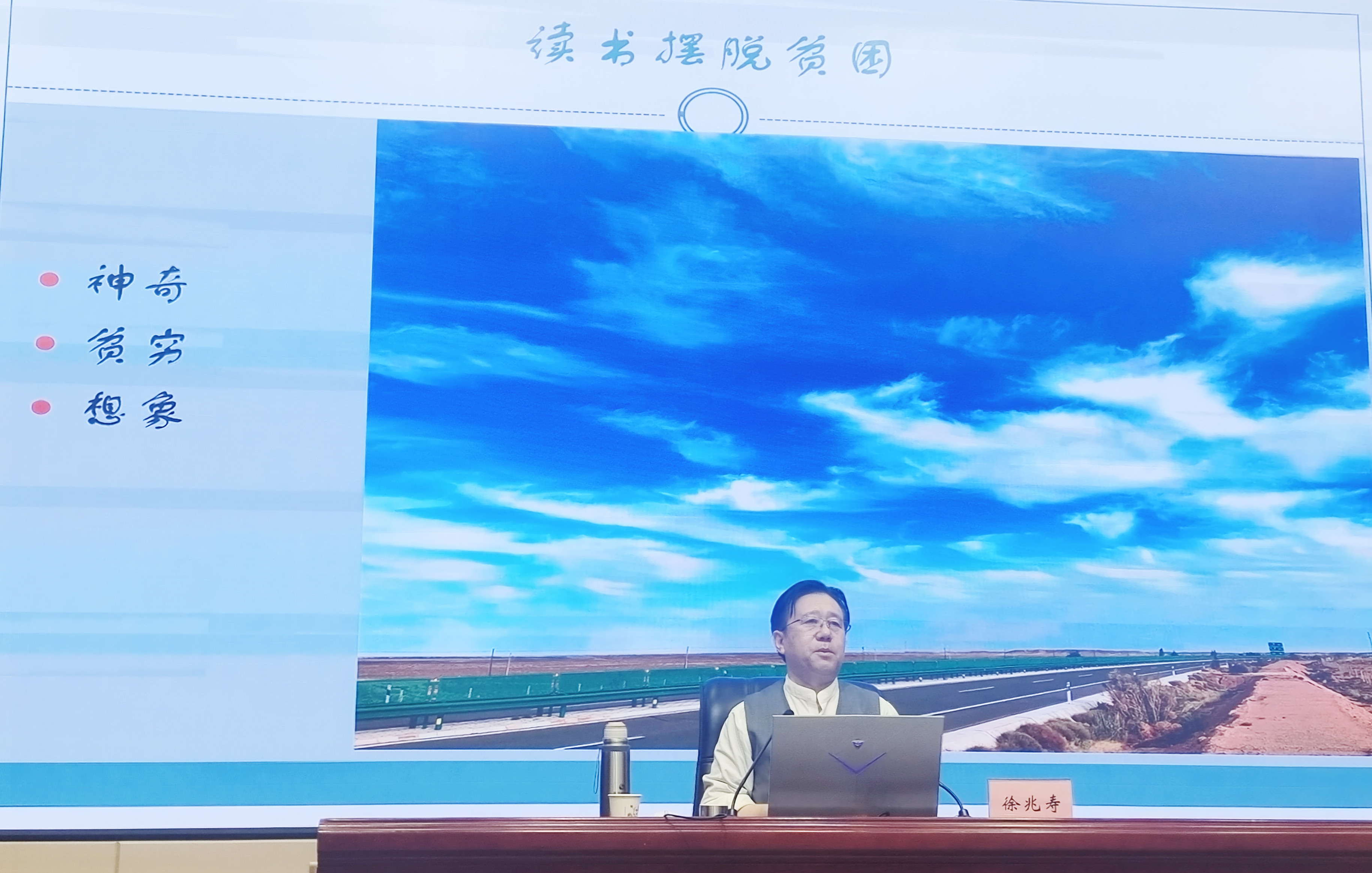 徐兆壽在講座中回顧了自己從事文學(xué)創(chuàng)造的初心、經(jīng)歷和創(chuàng)作風(fēng)格的變化,向師生分享了自己的心路歷程和文學(xué)創(chuàng)作道路。勉勵同學(xué)們要懷揣夢想,傳承中國優(yōu)秀傳統(tǒng)文化,對世界充滿好奇,用知識改變命運,在實現(xiàn)中華民族偉大復(fù)興中貢獻(xiàn)自己。