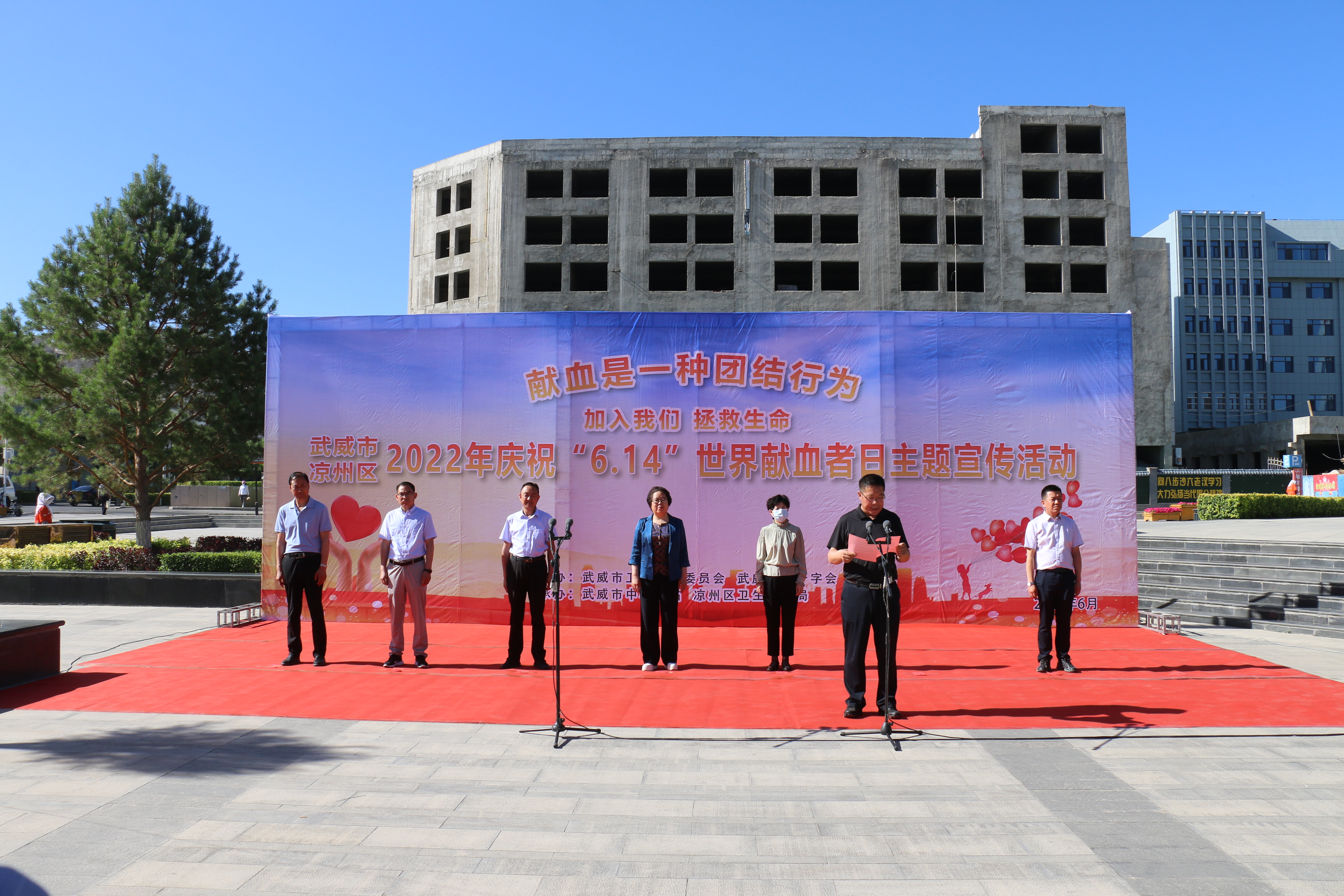 6月14日上午,由市衛(wèi)健委,市紅十字會(huì)主辦,市中心血站、涼州區(qū)衛(wèi)健局承辦的“獻(xiàn)血是一種團(tuán)結(jié)行為。加入我們, 拯救生命”慶祝第十九個(gè)世界獻(xiàn)血者日主題宣傳活動(dòng)在市文化廣場(chǎng)隆重舉行,市人大常委會(huì)副主任劉光美、市政協(xié)副主席趙曉暉、市政府副秘書(shū)長(zhǎng)李懷金出席活動(dòng)。學(xué)校黨委委員、副校長(zhǎng)田迎春參加活動(dòng),并代表學(xué)校發(fā)言。