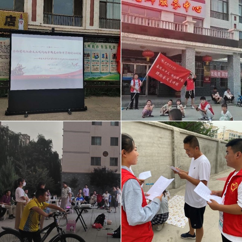 為深入學習習近平總書記在慶祝中國共產(chǎn)主義青年團成立100周年大會上的重要講話精神,貫徹落實黨的十九屆六中全會精神和省第十四次黨代會精神,引導(dǎo)和幫助廣大青年學生上好與現(xiàn)實相結(jié)合的“大思政課”,在社會課堂中“受教育、長才干、作貢獻”,堅定信念聽黨話、跟黨走,迎接黨的二十大勝利召開,由翟存祥名師工作室指導(dǎo)的“習近平新時代中國特色社會主義思想學習社”的大學生積極組建理論普及宣講團,開展理論普及宣講活動。