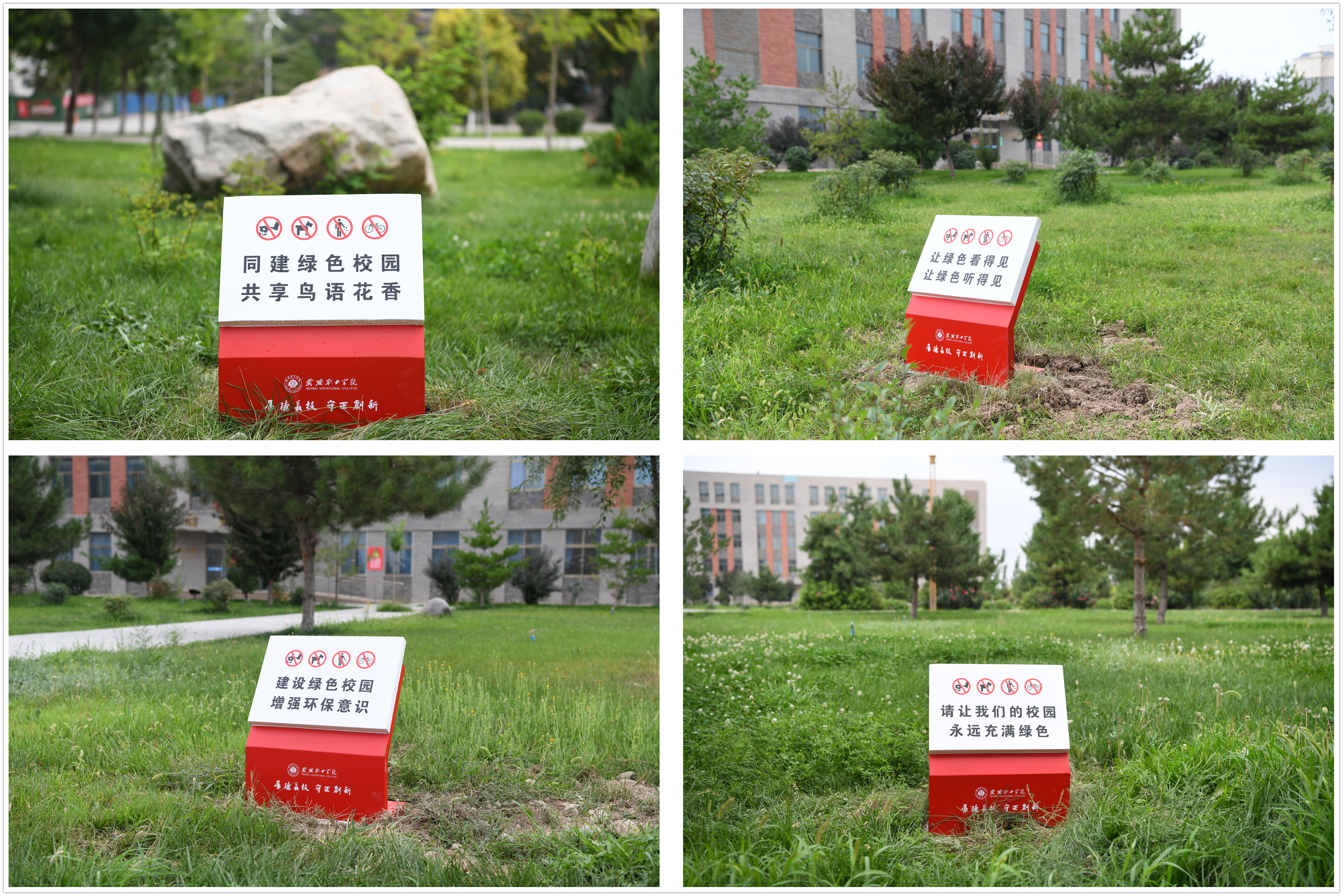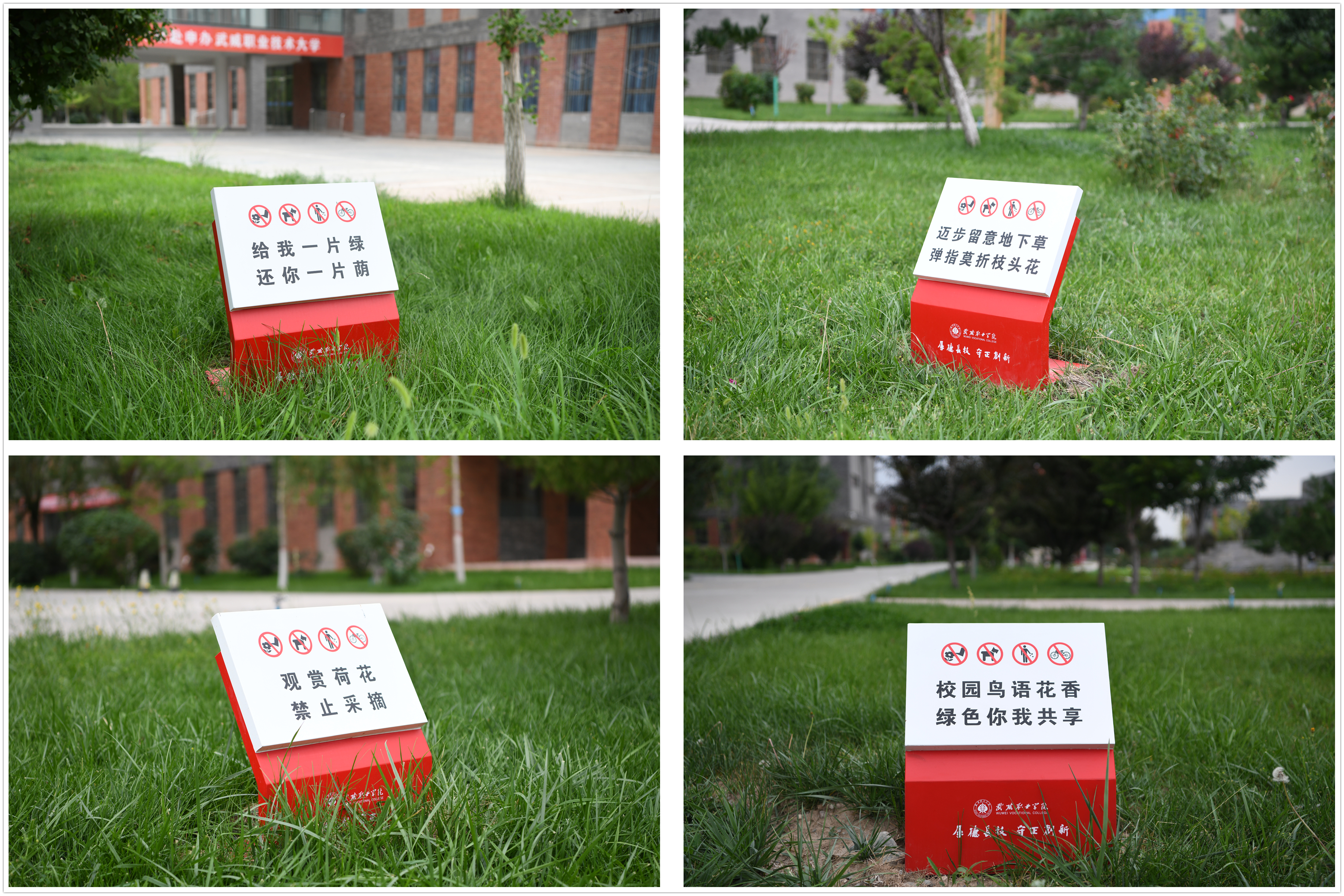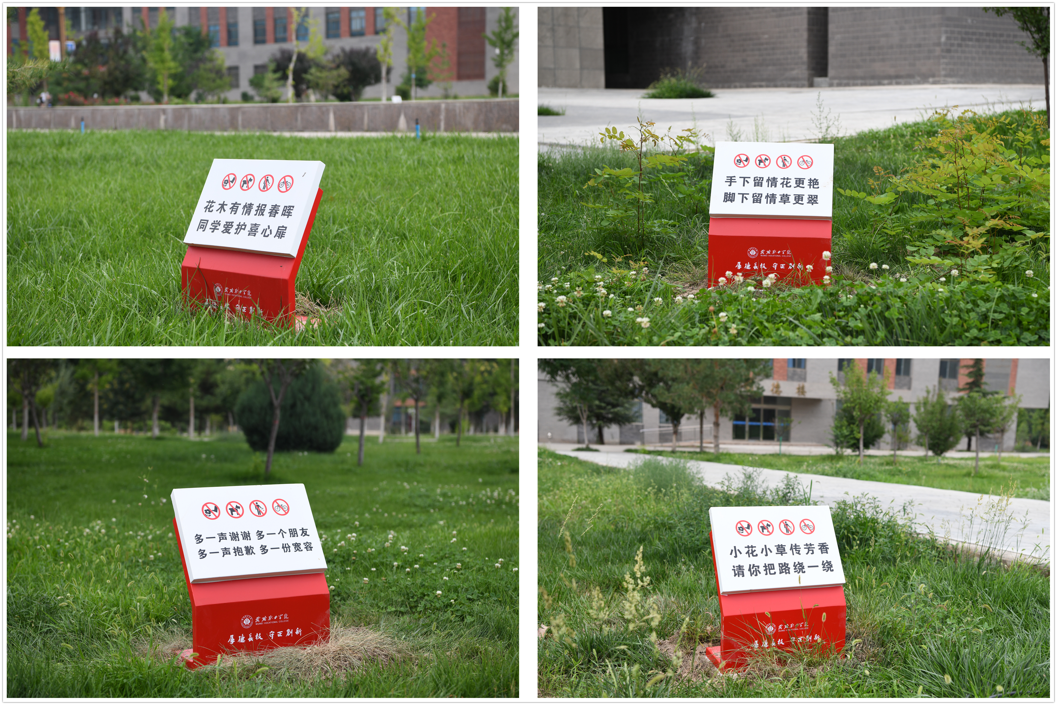 這些文明提示牌用語言簡意賅、生動活潑,設(shè)計(jì)典雅大方,富有人文情懷,與校園整體環(huán)境相得益彰,既起到提醒行人言行的作用,又使校園環(huán)境更加優(yōu)美,成為了校園一道亮麗的風(fēng)景。