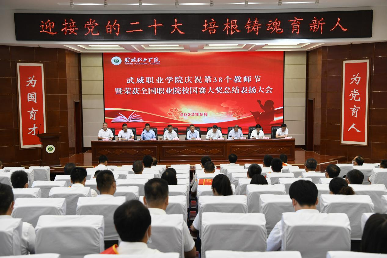 9月7日,學(xué)校慶祝第38個(gè)教師節(jié)暨榮獲全國(guó)職業(yè)院校國(guó)賽大獎(jiǎng)總結(jié)表?yè)P(yáng)大會(huì)在菁英廳隆重舉行。中科院先進(jìn)核能創(chuàng)新研究院高級(jí)技術(shù)顧問(wèn)、教育顧問(wèn),原華東理工大學(xué)副校長(zhǎng)、武威職業(yè)學(xué)院中科低碳新能源技術(shù)學(xué)院院長(zhǎng)、教授楊存忠,武威市教育局黨組成員、副局長(zhǎng)李海峰,學(xué)校領(lǐng)導(dǎo)班子成員出席會(huì)議,中層以上干部、受表?yè)P(yáng)教師及學(xué)生代表參加會(huì)議。大會(huì)由黨委書記、校長(zhǎng)趙明主持。
