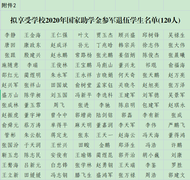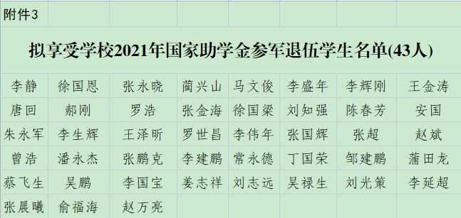 關(guān)于補發(fā)退役學生專項助學金的公示