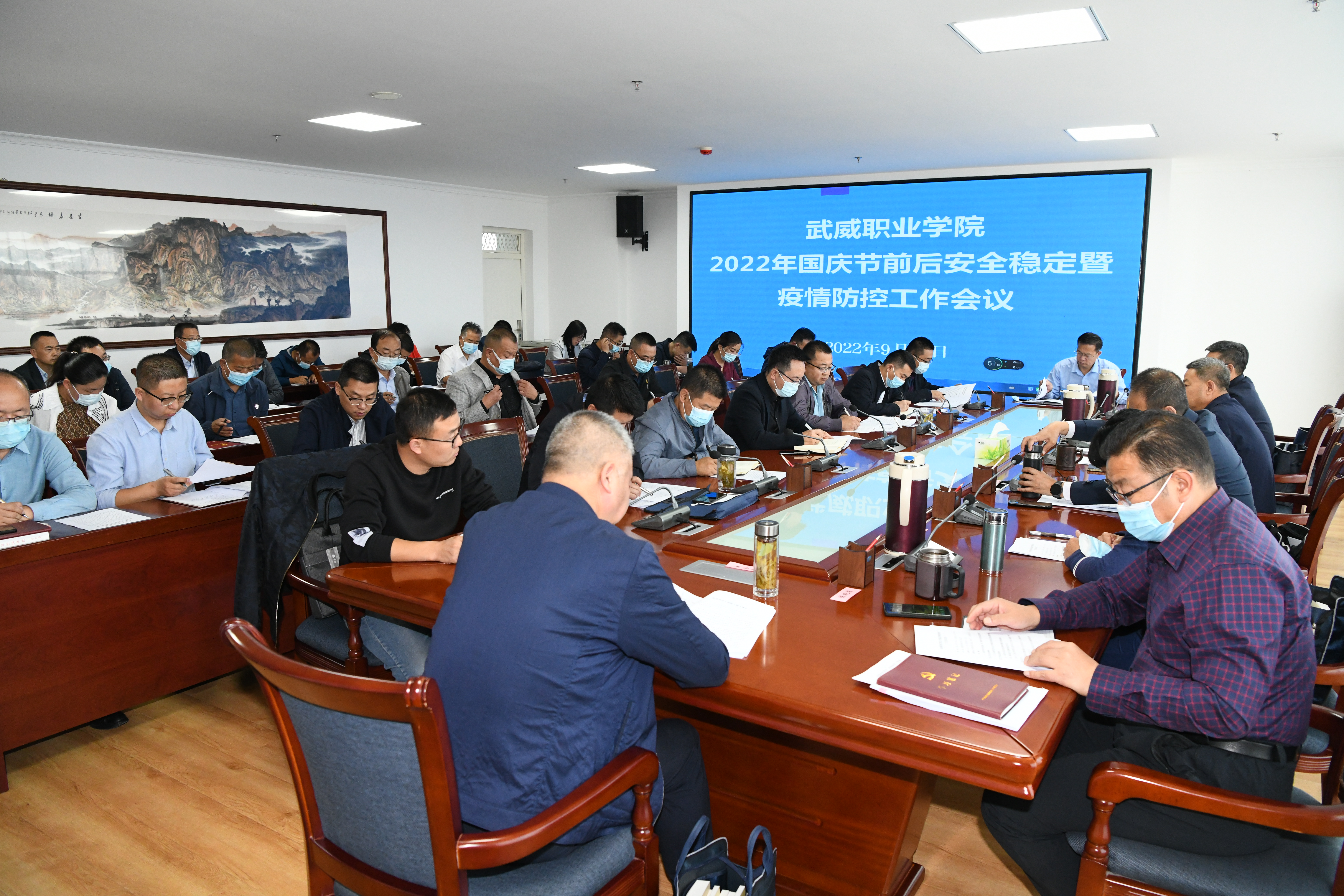 會議傳達(dá)學(xué)習(xí)了省、市、教育廳安全生產(chǎn)暨疫情防控工作會議精神、通報了近期保密警示案例;組織人事處、宣傳統(tǒng)戰(zhàn)部、教務(wù)處、學(xué)生工作處、后勤管理處、安全保衛(wèi)處、網(wǎng)絡(luò)安全與信息中心等部門圍繞國慶節(jié)前后相關(guān)工作表態(tài)發(fā)言。