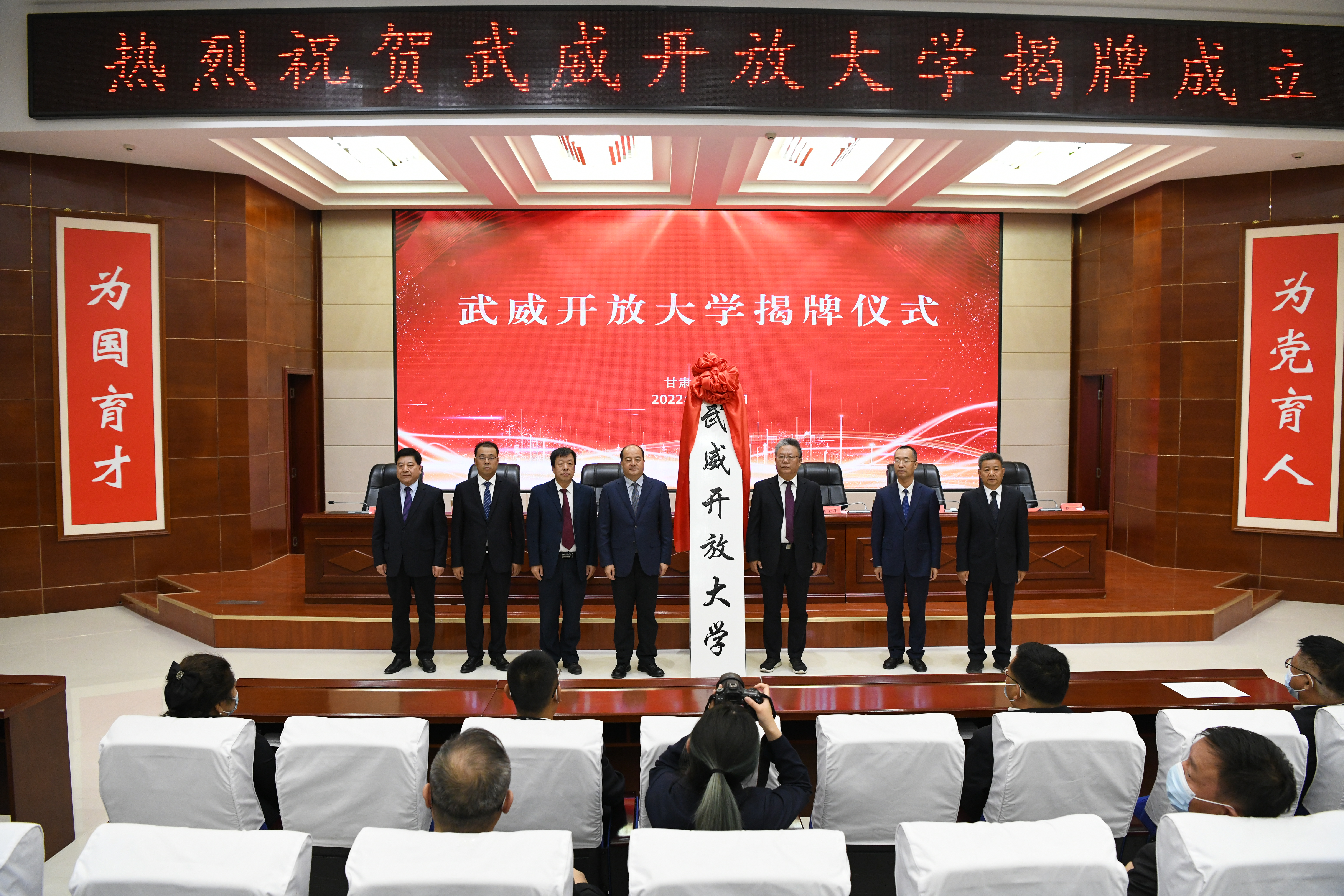 2022年9月28日,武威開放大學揭牌儀式在武威職業(yè)學院菁英廳順利舉行,標志著有43年辦學歷程的甘肅廣播電視大學武威分校正式更名轉型為武威開放大學,開啟了武威開放大學改革發(fā)展的新征程。