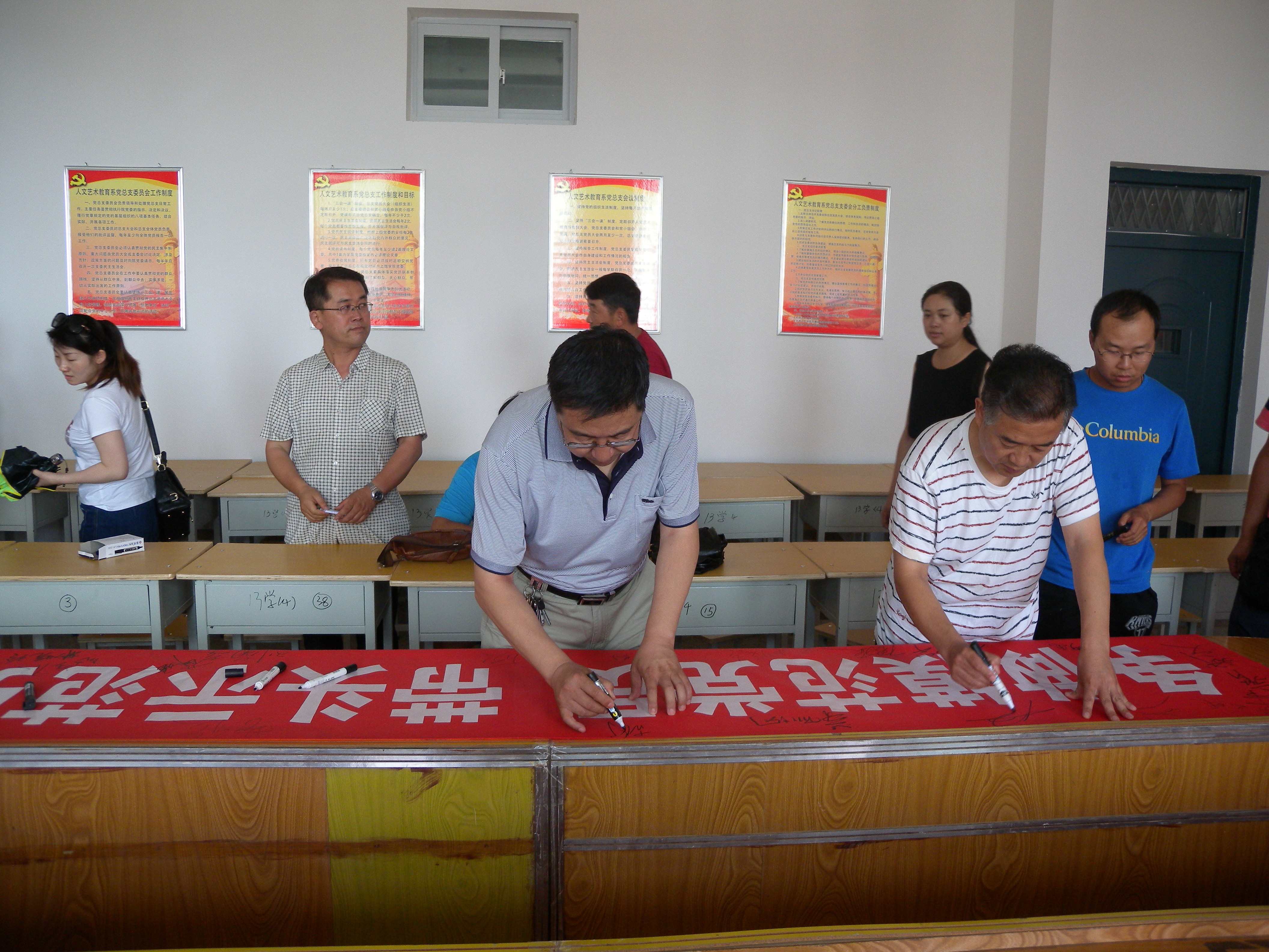根據(jù)學(xué)院黨委慶“七一”系列活動方案,人文藝術(shù)教育系黨總支于7月4日下午在勵(lì)勤樓403黨員活動室開展了“爭做模范黨員,帶頭示范引領(lǐng)” 師生黨員簽名活動。
