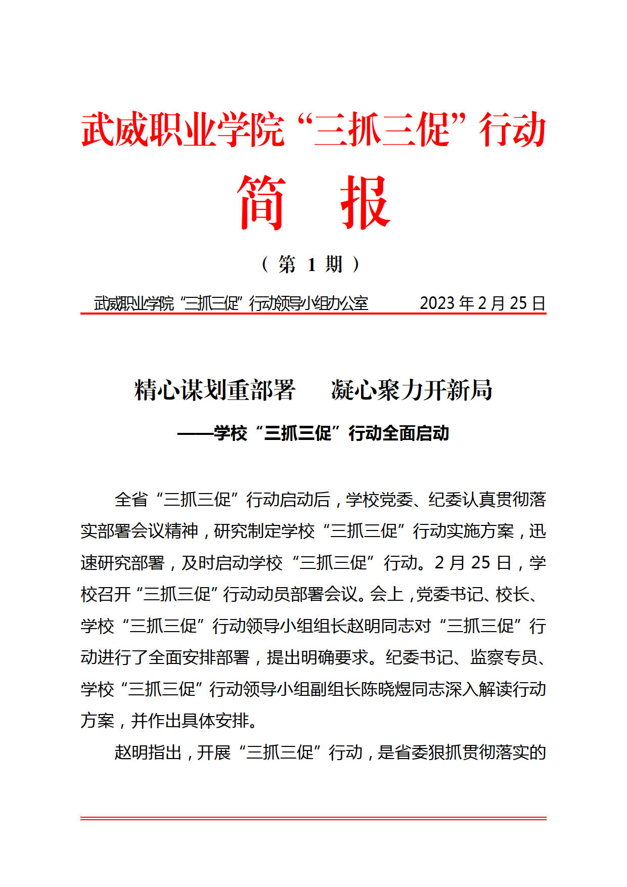 武威職業(yè)學院“三抓三促”行動簡報第1期