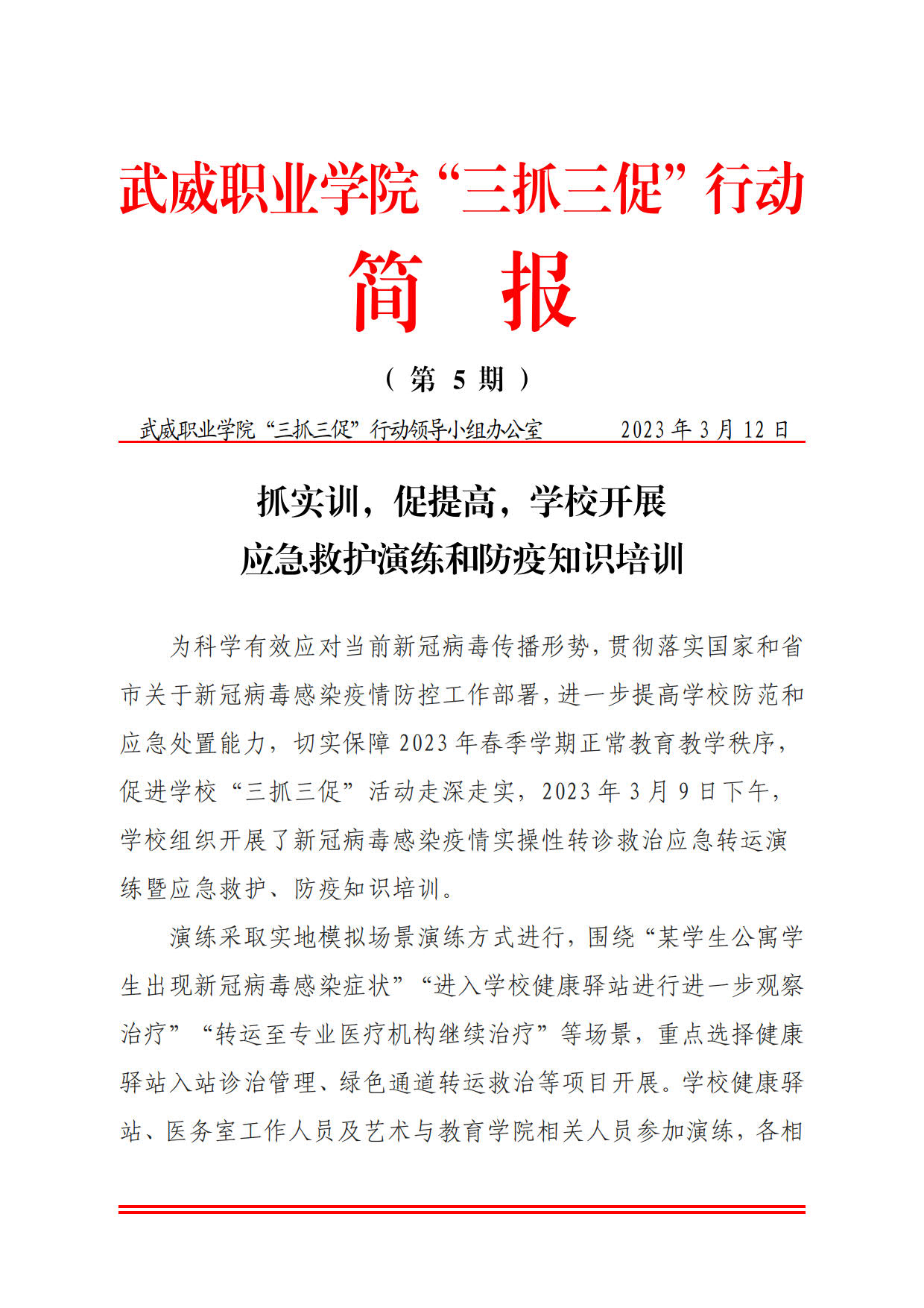 簡報(bào)第5期:抓實(shí)訓(xùn),促提高,學(xué)校開展應(yīng)急救護(hù)演練和防疫知識(shí)培訓(xùn)