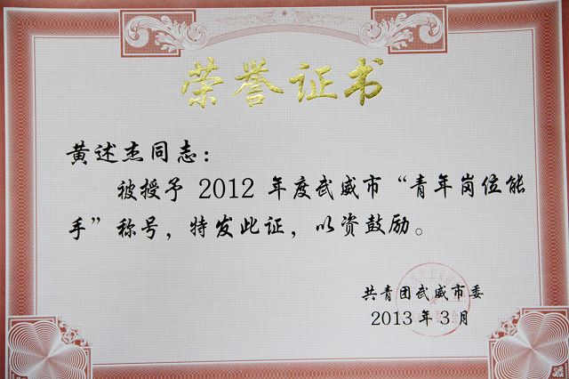 3月8日,在共青團(tuán)武威市二屆七次全委會上,團(tuán)市委表彰了2012年度先進(jìn)集體和個人,我系團(tuán)總支被評為“武威市五四紅旗團(tuán)支部”,系團(tuán)總支書記黃述杰老師被評為“武威市青年崗位能手”,11級光伏發(fā)電技術(shù)及應(yīng)用大專班張鳳鳳同學(xué)被評為“武威市優(yōu)秀共青團(tuán)員”。