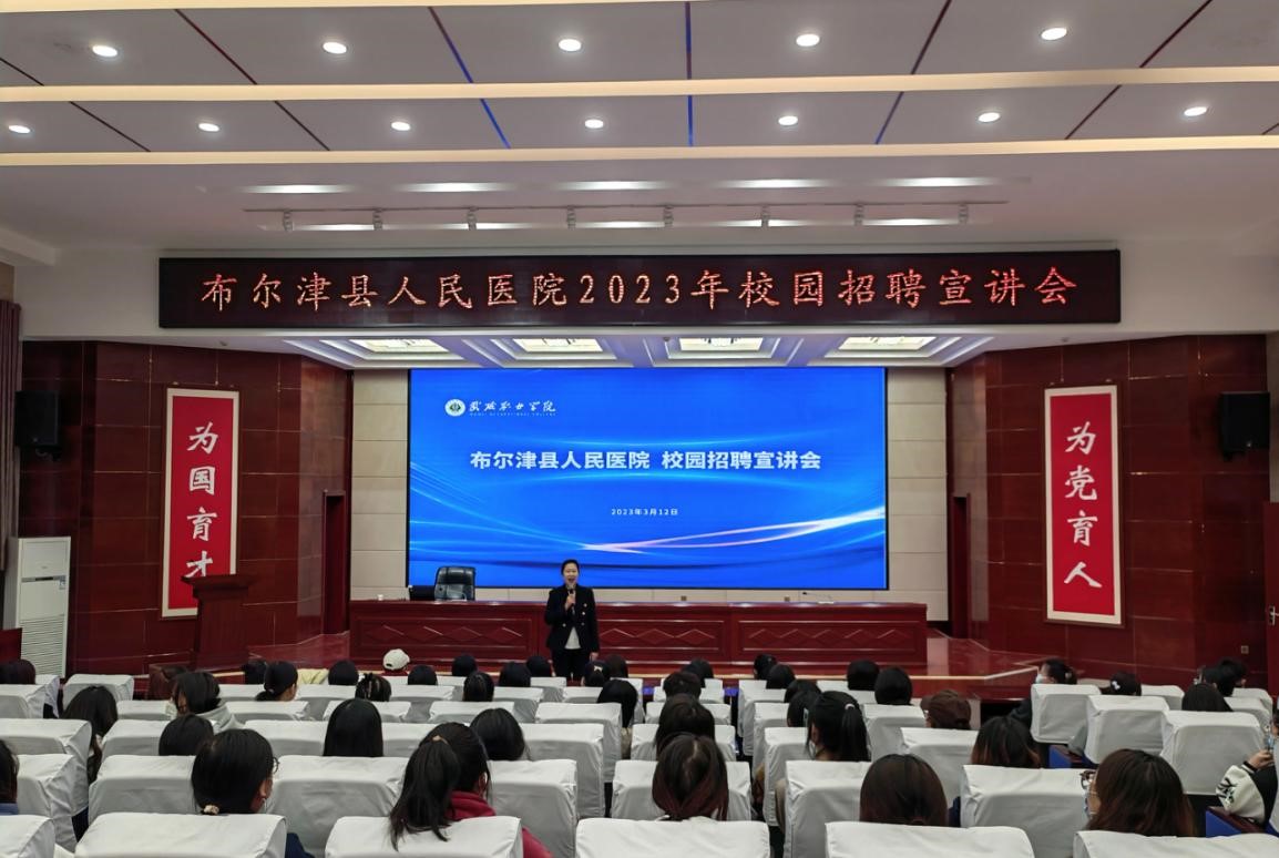 李娟介紹了布爾津縣人民醫(yī)院的基本情況、發(fā)展思路和人才需求,表達(dá)了對(duì)此次合作的美好祝愿。王守云對(duì)李娟一行來(lái)?,F(xiàn)場(chǎng)簽約表示了歡迎,也對(duì)布爾津縣人民醫(yī)院近年的發(fā)展成果給予了高度評(píng)價(jià)。雙方表示,希望今后在學(xué)生實(shí)習(xí)實(shí)訓(xùn)、人才培養(yǎng)質(zhì)量、畢業(yè)生實(shí)習(xí)就業(yè)、教師職業(yè)能力提升等方面加強(qiáng)合作,拓寬合作范圍。簽約儀式結(jié)束后,布爾津縣人民醫(yī)院在學(xué)生發(fā)展中心舉行了校園招聘宣講活動(dòng),約200名師生參加,部分學(xué)生現(xiàn)場(chǎng)達(dá)成實(shí)習(xí)就業(yè)意向。