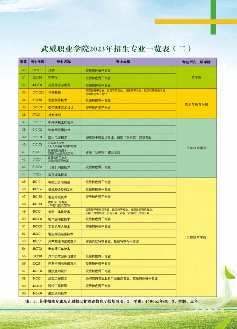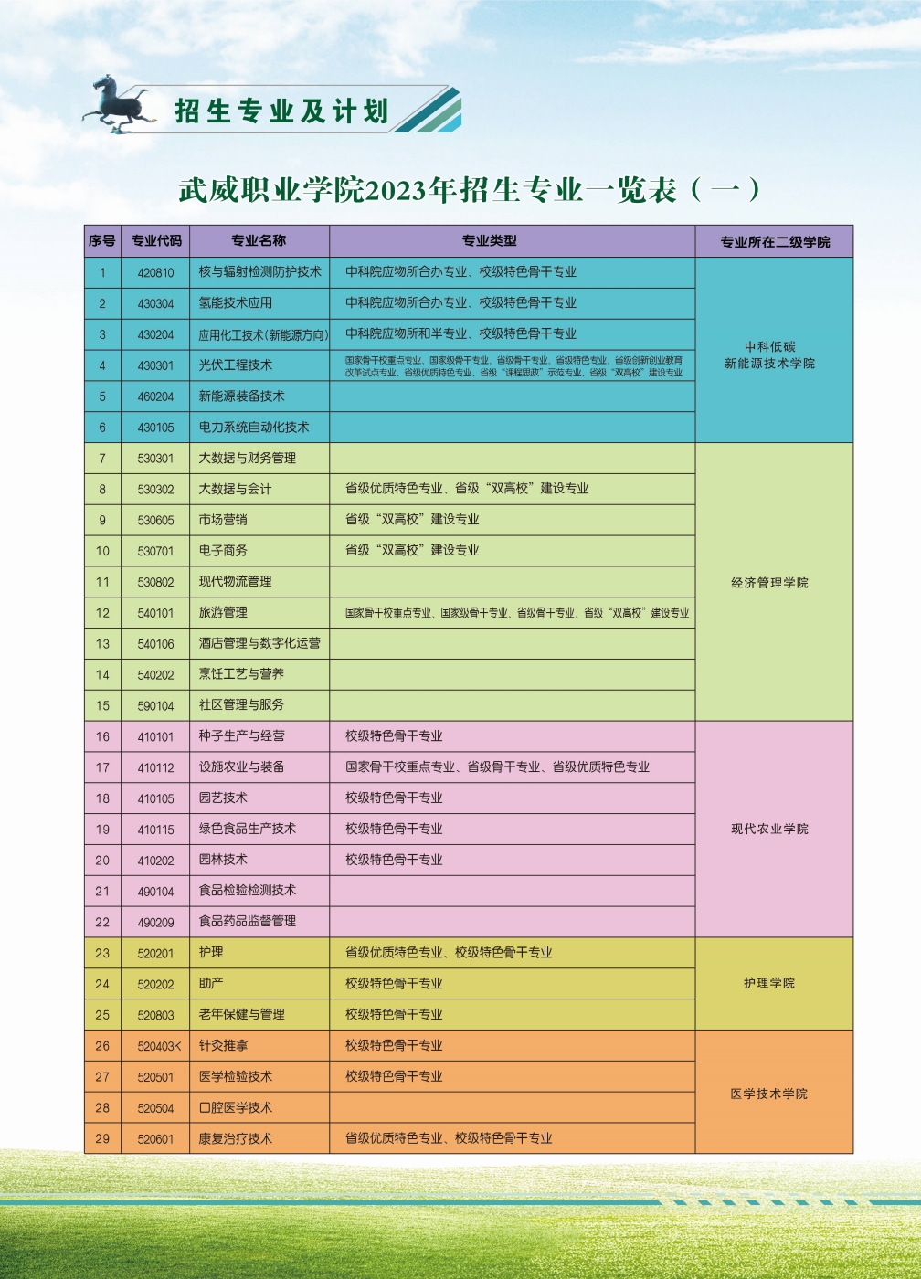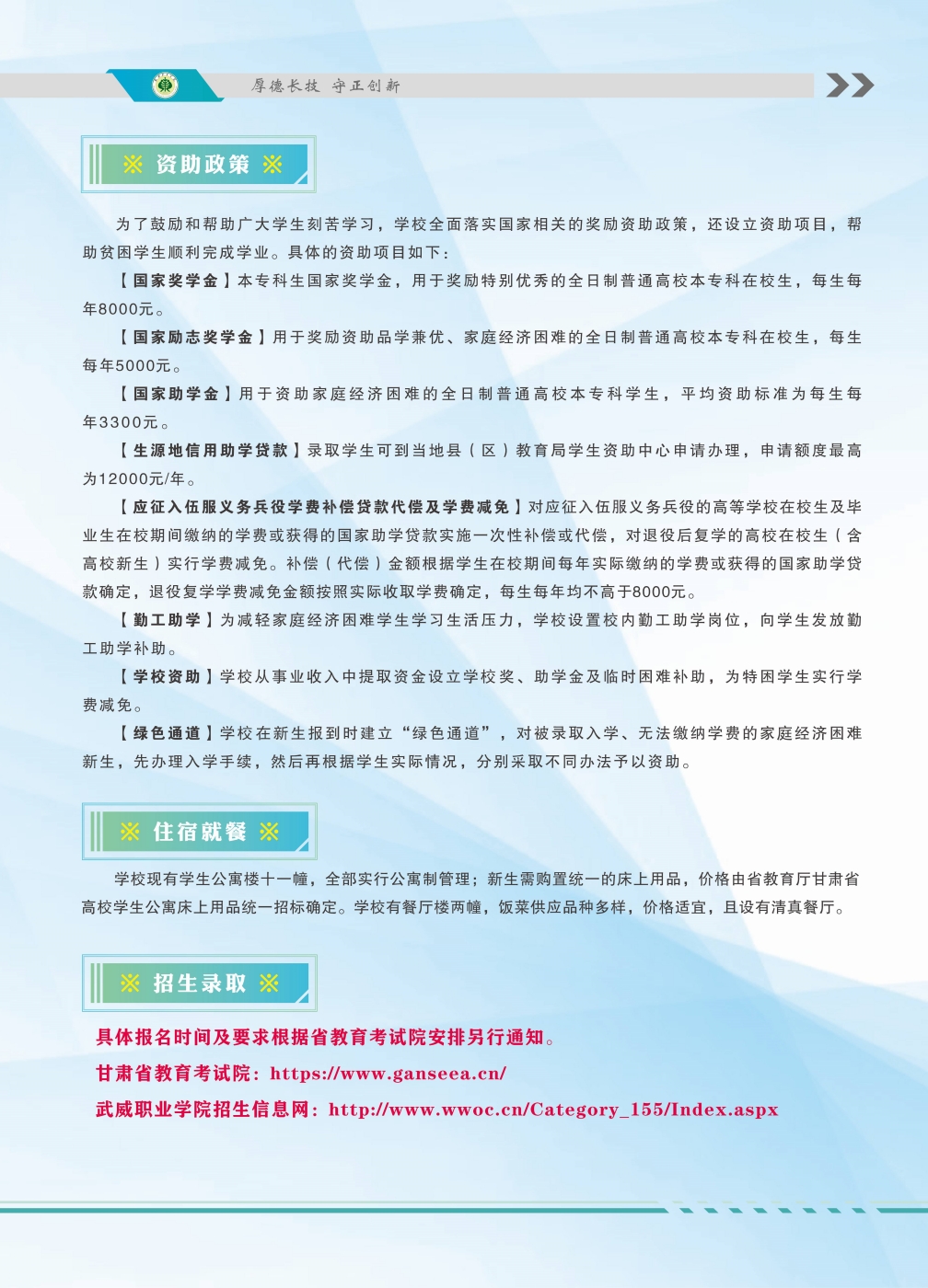 武威職業(yè)學(xué)院重點專業(yè)招生簡章