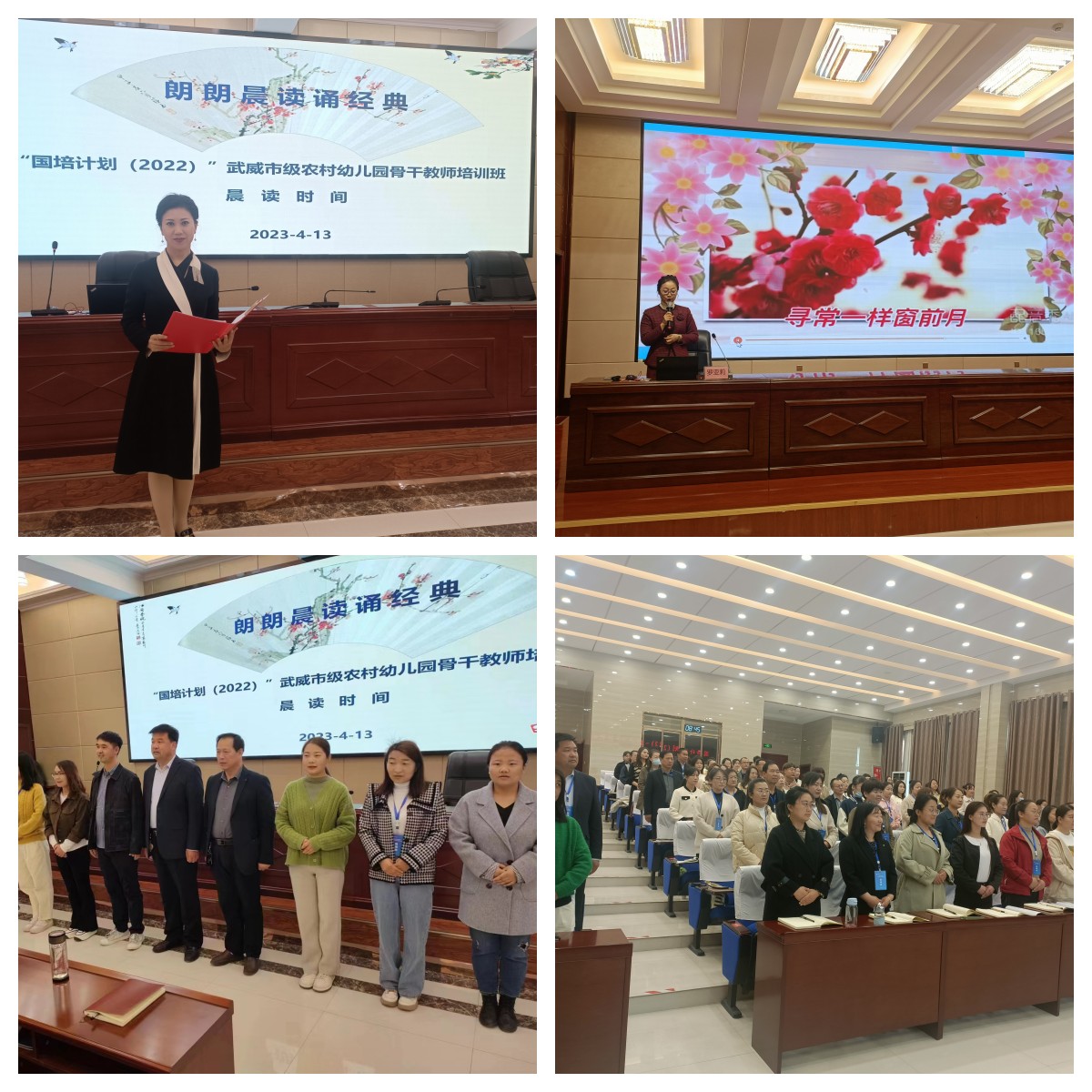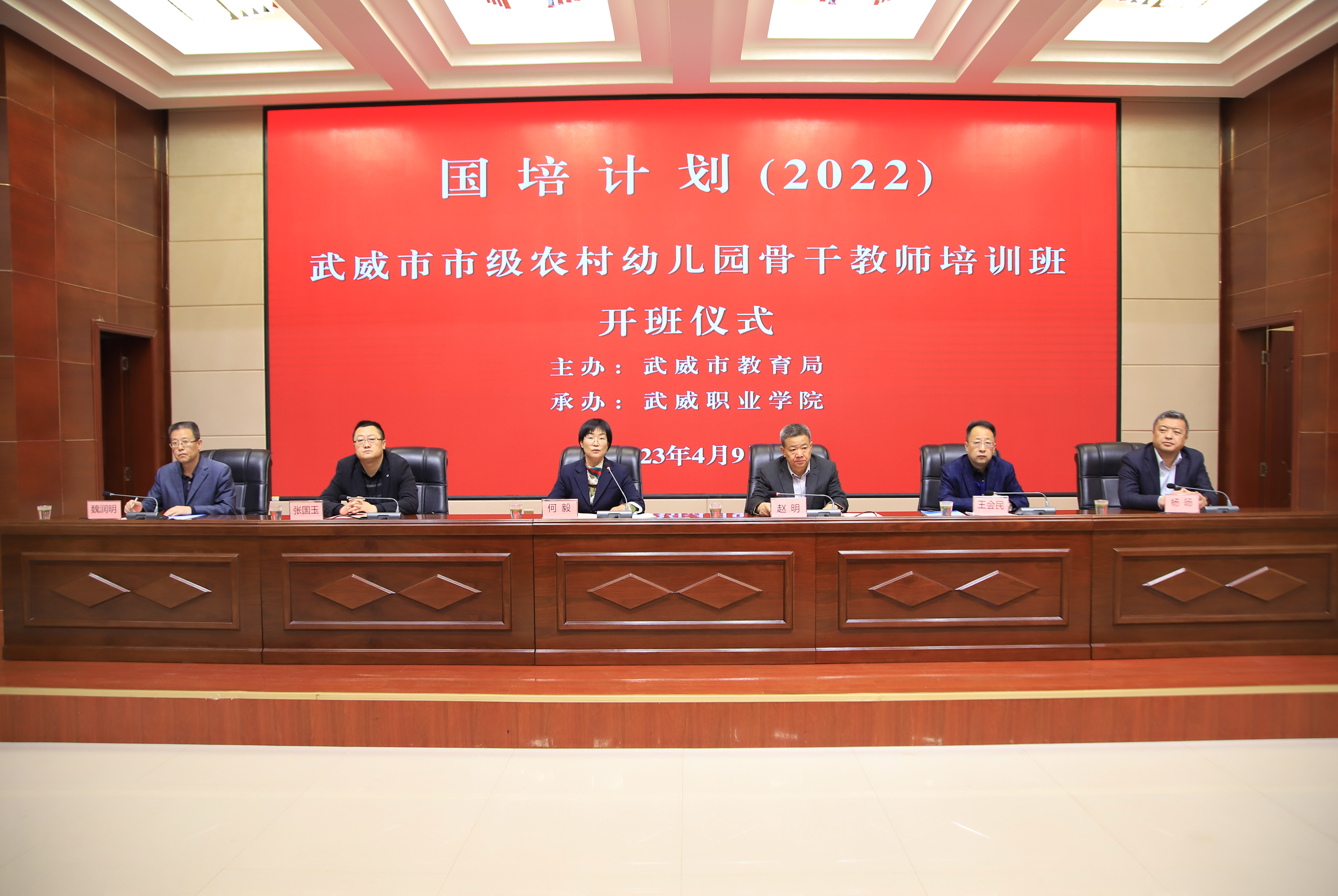 2023年4月9日上午,“國(guó)培計(jì)劃(2022)”武威市市級(jí)農(nóng)村幼兒園骨干教師培訓(xùn)班開(kāi)班儀式在學(xué)院菁英廳舉辦,武威市教育局、武威職業(yè)學(xué)院領(lǐng)導(dǎo)及相關(guān)科室負(fù)責(zé)人參加開(kāi)班儀式。
