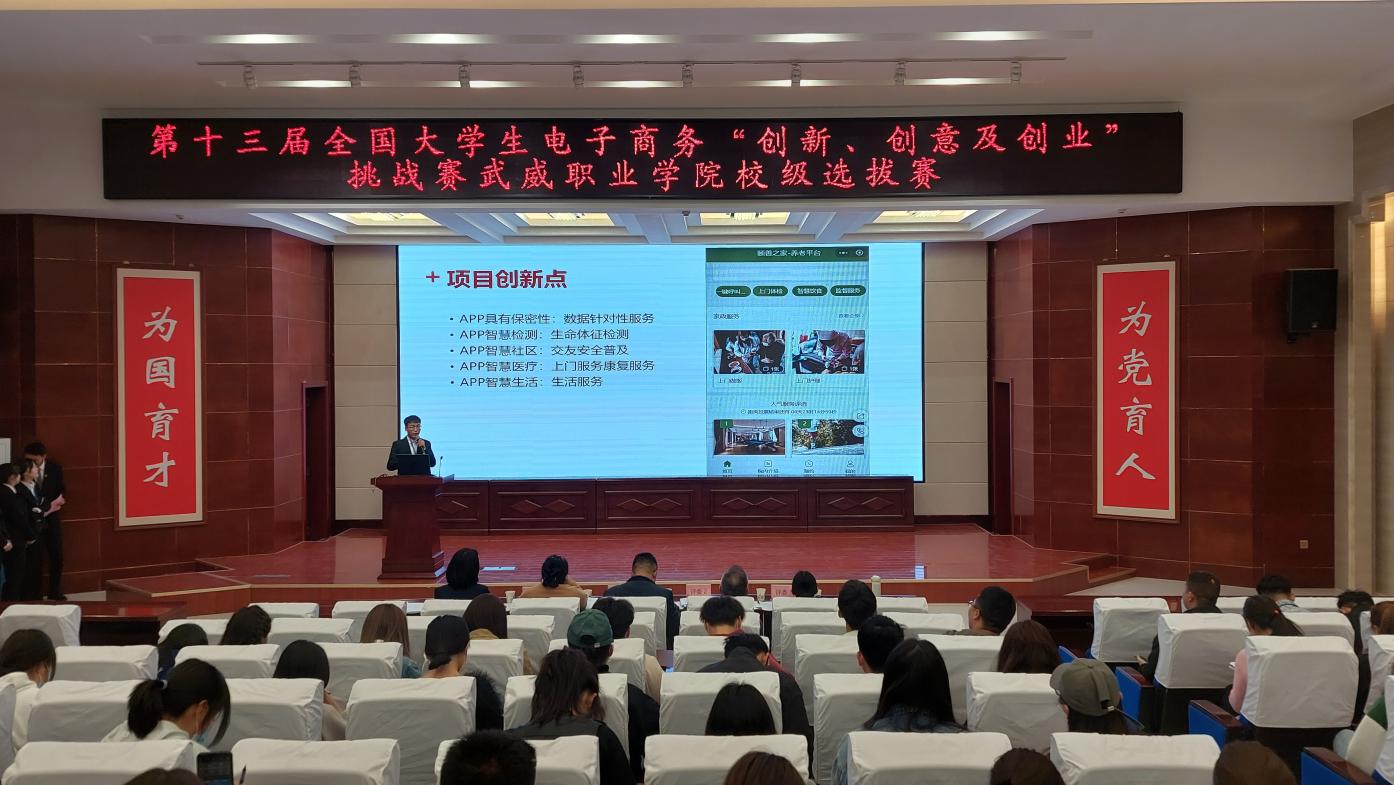 從校級通訊賽中脫穎而出的參賽隊(duì)伍依次登臺展示,項(xiàng)目涵蓋非遺傳承、智慧養(yǎng)老、鄉(xiāng)村振興、電商直播、嬰幼托育、新能源等多個主題。在答辯環(huán)節(jié),評委針對項(xiàng)目特點(diǎn)進(jìn)行了專業(yè)提問,并從項(xiàng)目名稱、商業(yè)模式、營銷策略、財務(wù)管理等方面進(jìn)行了指導(dǎo)。
