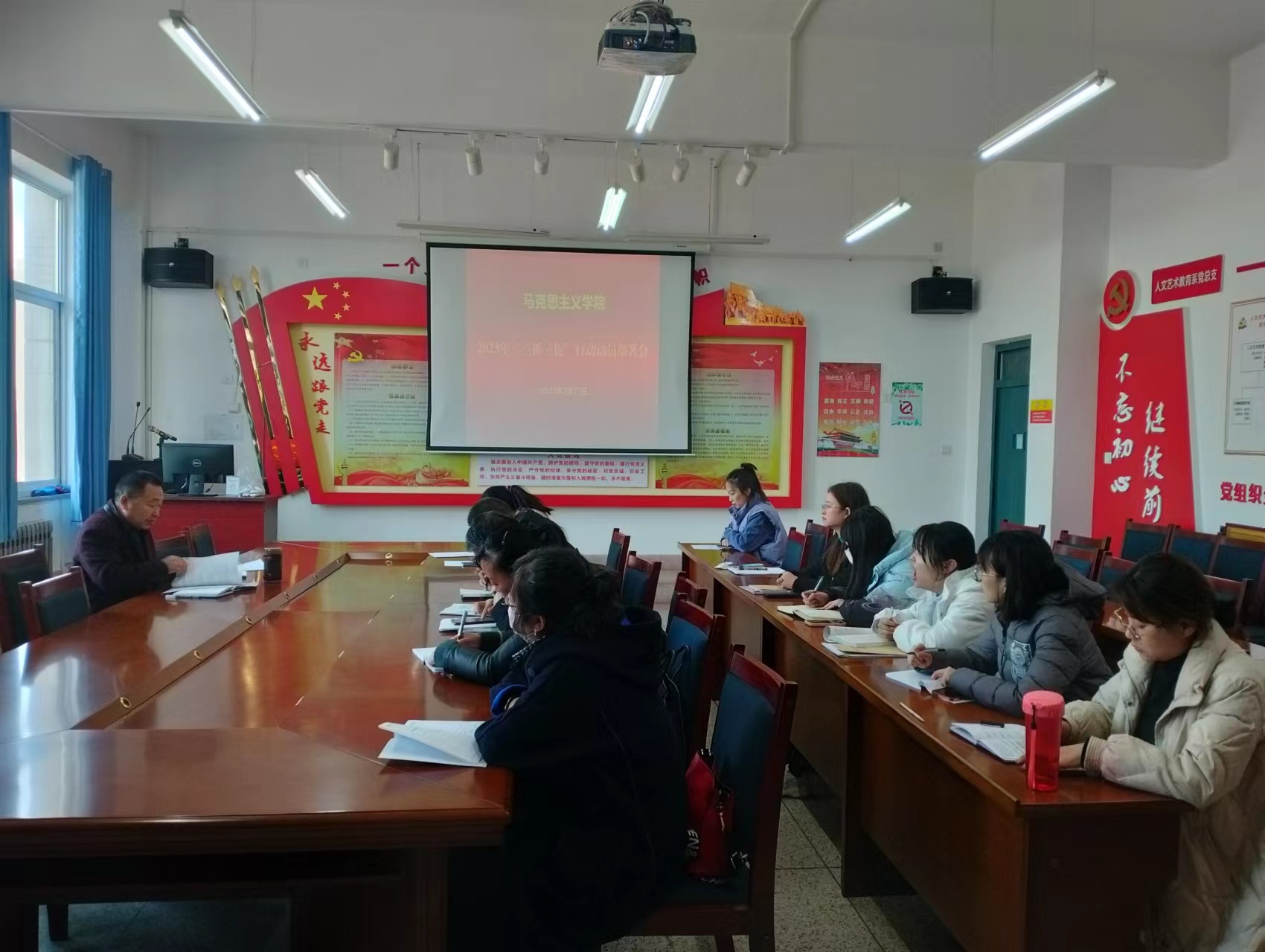 近日,按照學(xué)?!叭ト佟毙袆?dòng)動(dòng)員部署會(huì)要求,馬克思主義學(xué)院第一時(shí)間召開會(huì)議,統(tǒng)一思想,明確任務(wù),召開“三抓三促”行動(dòng)動(dòng)員部署會(huì),學(xué)院負(fù)責(zé)人劉心主持會(huì)議,全體思政課教師參加了會(huì)議。
