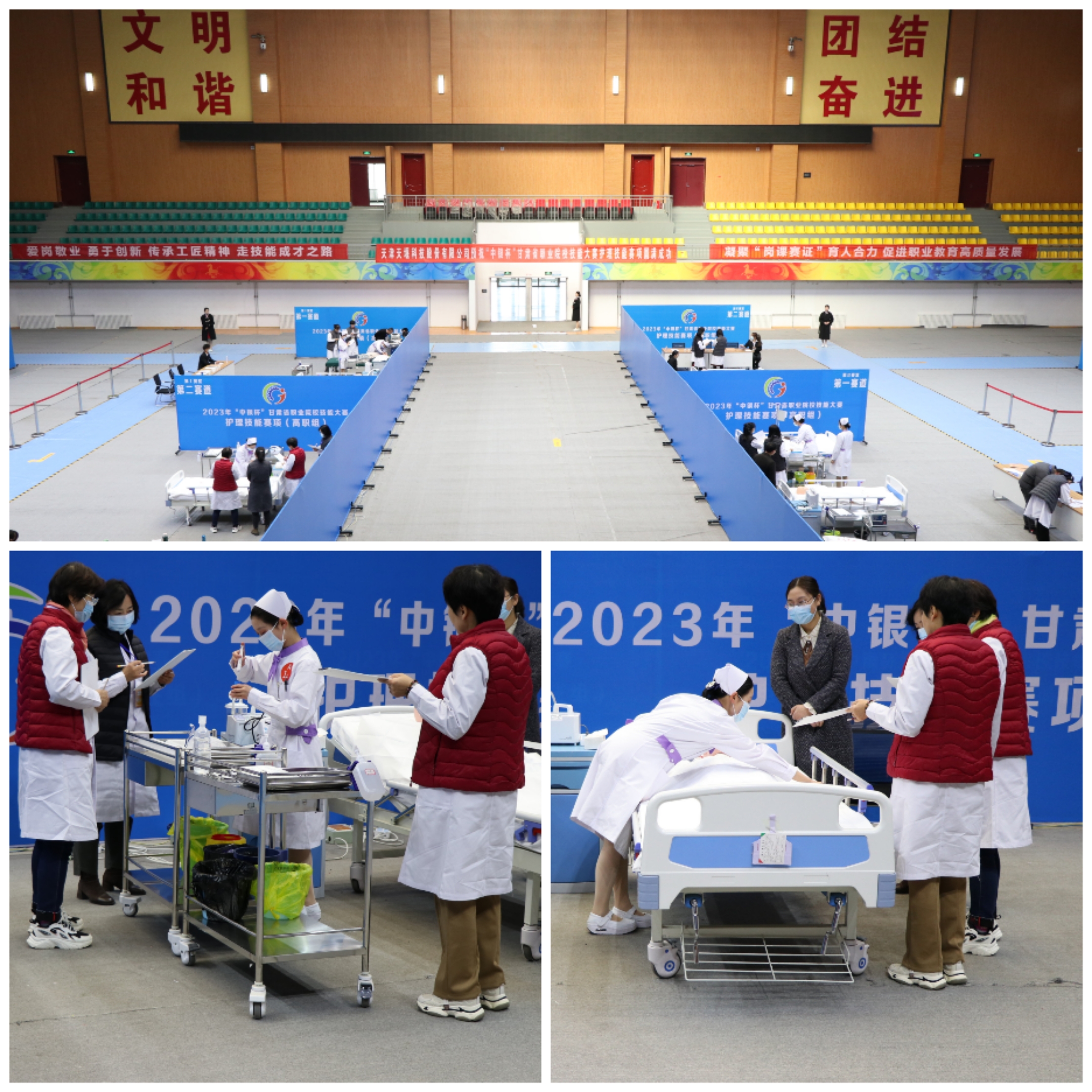 為全面貫徹落實(shí)省委辦公廳、省政府辦公廳《關(guān)于推動(dòng)現(xiàn)代職業(yè)教育高質(zhì)量發(fā)展,加快“技能甘肅”建設(shè)的若干措施》,進(jìn)一步推動(dòng)打造“技能甘肅”工作,促進(jìn)職業(yè)學(xué)校專(zhuān)業(yè)建設(shè)與教學(xué)改革,提高學(xué)生實(shí)踐動(dòng)手能力和職業(yè)素養(yǎng),弘揚(yáng)勞動(dòng)光榮、技能寶貴、創(chuàng)造偉大的時(shí)代風(fēng)尚,引領(lǐng)職業(yè)學(xué)校適應(yīng)行業(yè)現(xiàn)狀及技術(shù)發(fā)展趨勢(shì),檢驗(yàn)教學(xué)成果,促進(jìn)護(hù)理專(zhuān)業(yè)的教育教學(xué)改革。4月10日-4月12日,2023年“中銀杯”甘肅省職業(yè)院校技能大賽護(hù)理技能賽項(xiàng)在武威職業(yè)學(xué)院順利舉行。來(lái)自全省10所高職院校的25個(gè)團(tuán)隊(duì)、50名學(xué)生和22名教師選手匯集武威職業(yè)學(xué)院賽場(chǎng),共同譜寫(xiě)護(hù)理人的工匠精神和大愛(ài)情懷。