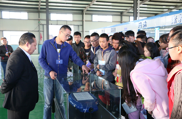 在榮寶照明,同學們了解了LED照明、LED路燈等太陽能能源開發(fā)及節(jié)能照明系列產(chǎn)品,參觀了LED封裝車間、路燈制造車間、涂裝車間、總裝車間;在航天萬源,工作人員帶領(lǐng)同學們參觀了風力發(fā)電機的輪轂生產(chǎn)線、主軸生產(chǎn)線、電機生產(chǎn)線并介紹了風力發(fā)電機的原理,風力發(fā)電機各部件生產(chǎn)流程;在甘肅建投,同學們參觀了風電設(shè)備、光伏產(chǎn)品、治沙設(shè)備的生產(chǎn)制造車間及相關(guān)工藝流程。