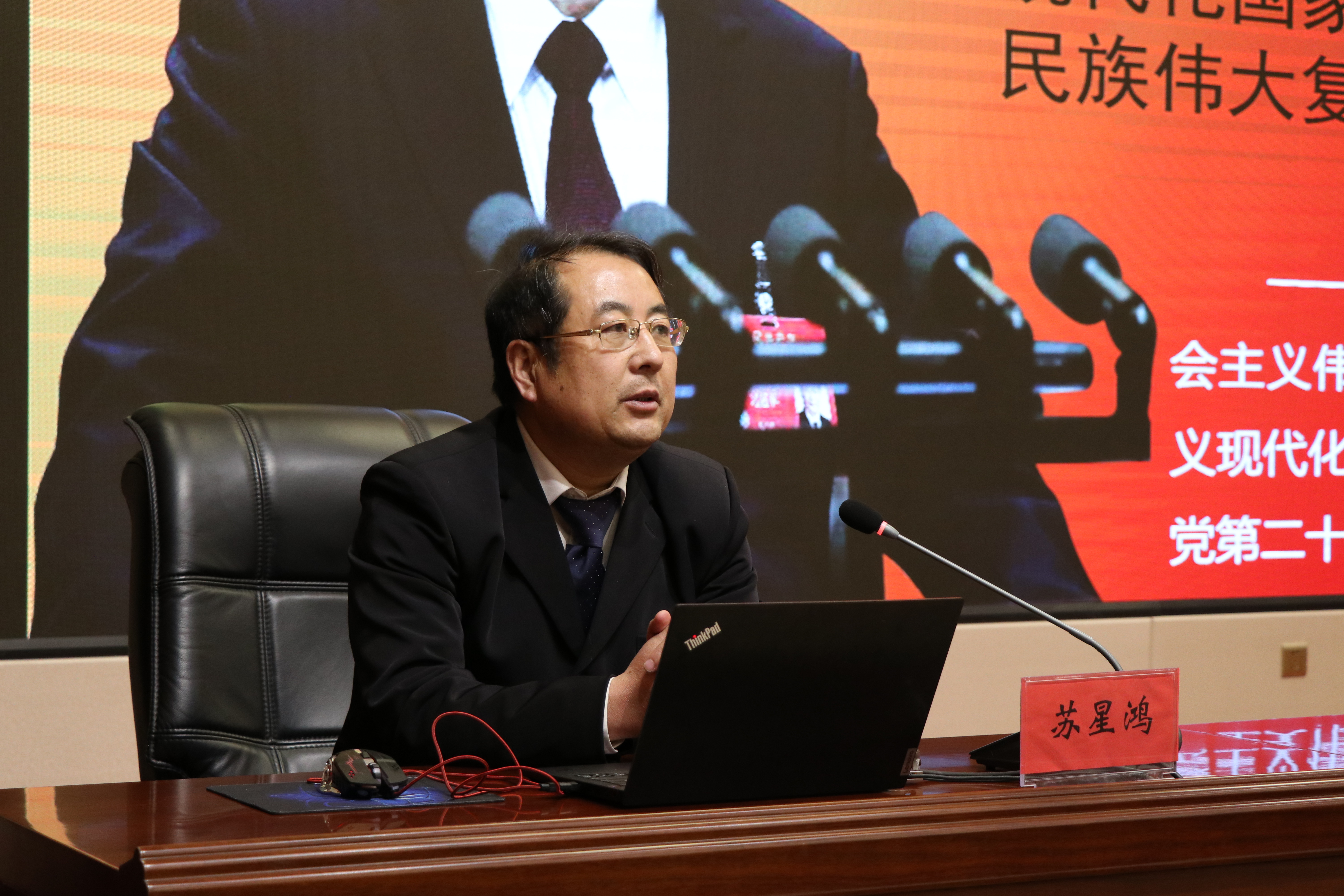 蘇星鴻教授以《深刻把握黨的二十大精神的核心要義》為題,從黨的二十大召開的歷史背景和重大意義、過去五年的工作和新時代十年的偉大變革、開辟馬克思主義中國化時代化新境界的科學(xué)內(nèi)涵、新時代新征程中國共產(chǎn)黨使命任務(wù)的豐富內(nèi)涵、以黨的自我革命推進(jìn)偉大的社會革命的實(shí)踐意義和“五個必由之路”的戰(zhàn)略意義六個方面進(jìn)行了深入淺出的闡述,對師生深刻理解黨的二十大精神具有很強(qiáng)的啟發(fā)意義。