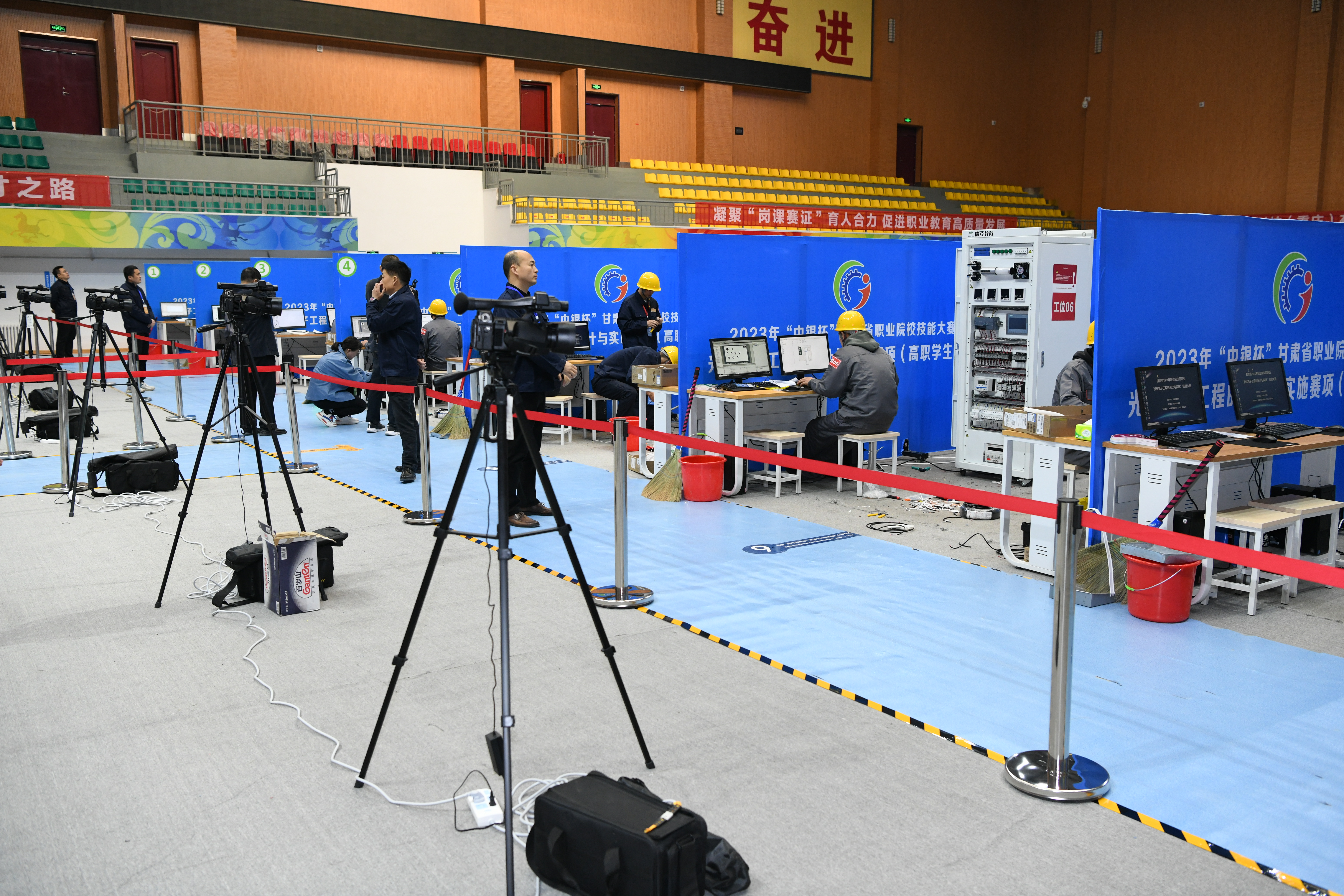 武威市教育局黨組書記、局長(zhǎng)王娟宣布2023年“中銀杯”甘肅省職業(yè)院校技能大賽武威職業(yè)學(xué)院賽點(diǎn)開賽。