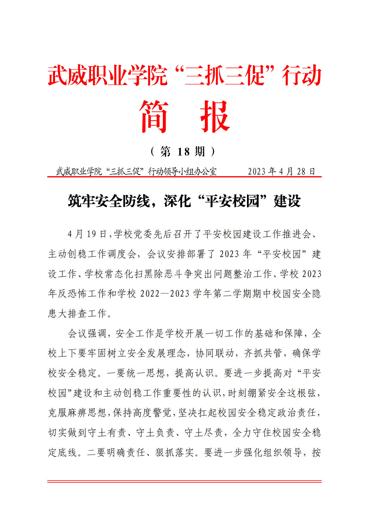 簡(jiǎn)報(bào)第18期:筑牢安全防線(xiàn),深化“平安校園”建設(shè)