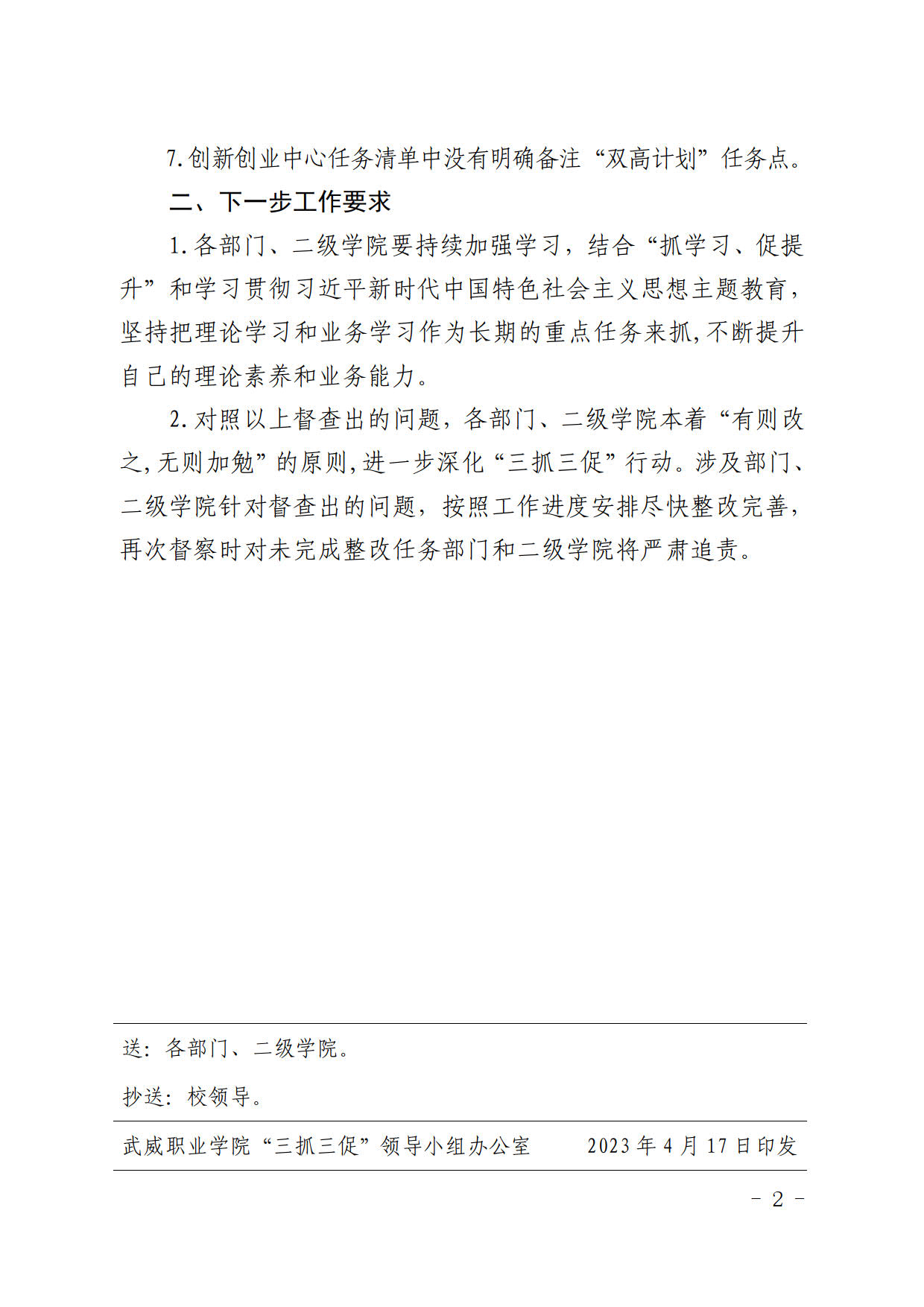 武威職業(yè)學(xué)院“三抓三促”行動督查通報(bào)( 二 )