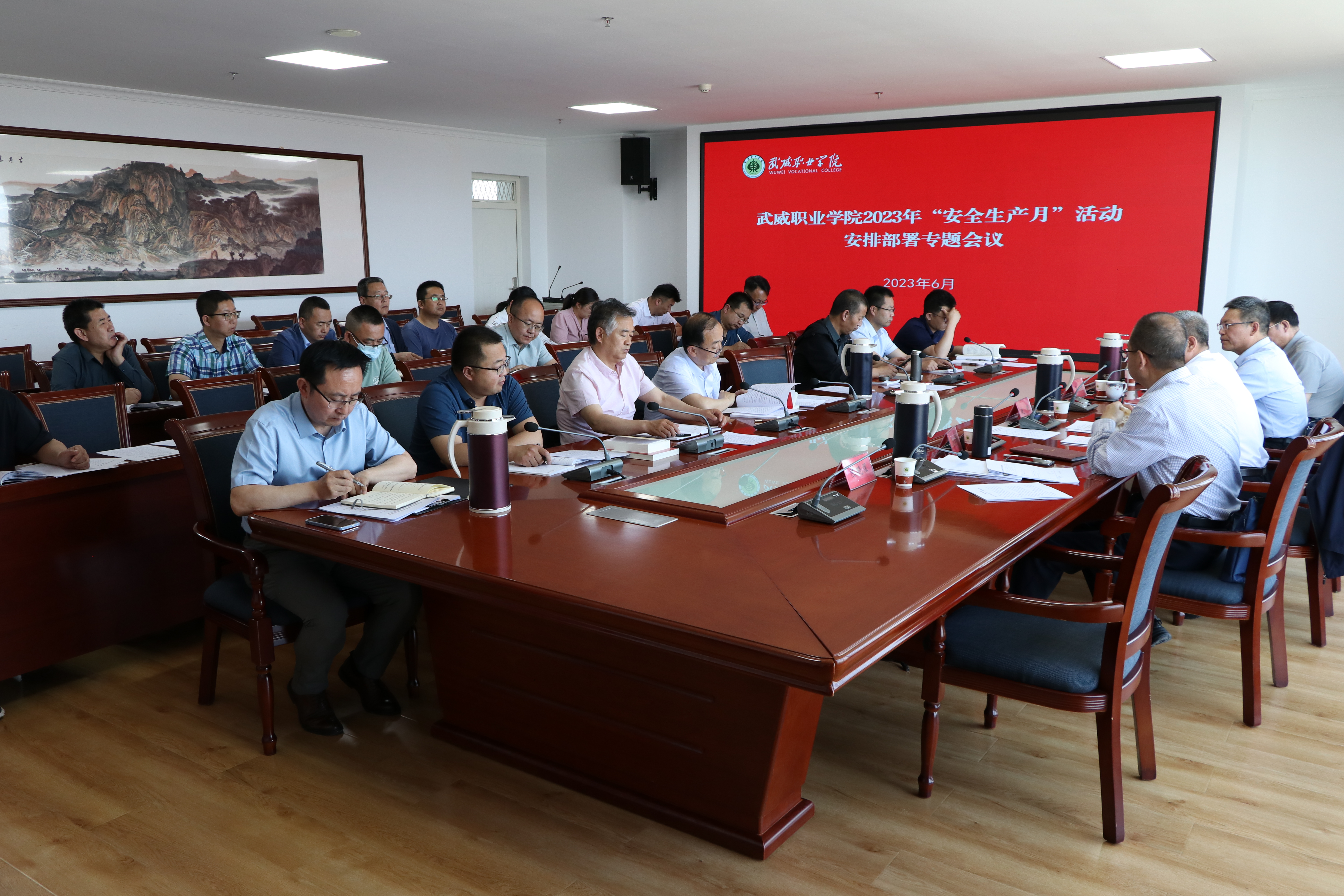 會議傳達(dá)學(xué)習(xí)了省教育廳《關(guān)于開展2023年教育系統(tǒng)“安全生產(chǎn)月”活動的通知》精神,并審定通過了《武威職業(yè)學(xué)院2023年“安全生產(chǎn)月”活動實(shí)施方案》。