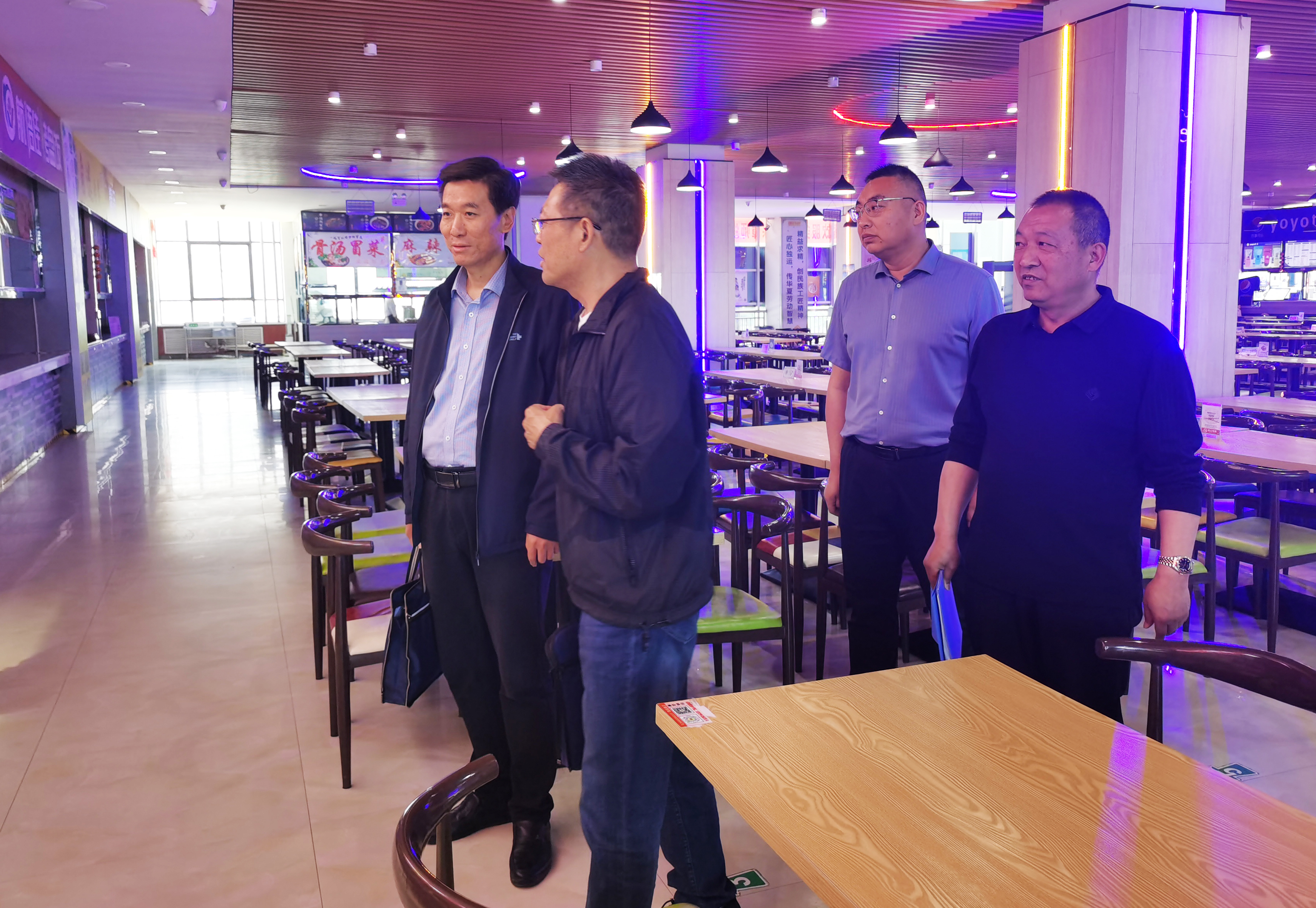 專題調(diào)研組在二號(hào)學(xué)生食堂就食堂規(guī)范化管理、食材采購(gòu)存放、加工售賣、餐具消毒、環(huán)境衛(wèi)生、飯菜價(jià)格、“互聯(lián)網(wǎng)+明廚亮灶”等進(jìn)行了查看。省委主題教育第十巡回指導(dǎo)組對(duì)此次調(diào)研主題及學(xué)校食堂保供穩(wěn)價(jià)、就餐環(huán)境等工作給予了充分肯定,同時(shí)也提出了意見建議。一是要及時(shí)消除安全隱患,維修翹邊、下沉吊頂;二是提供多層次餐飲服務(wù),滿足不同地域?qū)W生的口味需求;三是加強(qiáng)細(xì)節(jié)管理,提升管理水平。為從業(yè)人員配發(fā)透明餐飲口罩,在確保安全衛(wèi)生的前提下,提升從業(yè)人員工作舒適度。四是要厲行節(jié)約,持續(xù)倡導(dǎo)光盤行動(dòng),杜絕舌尖上的浪費(fèi)。
