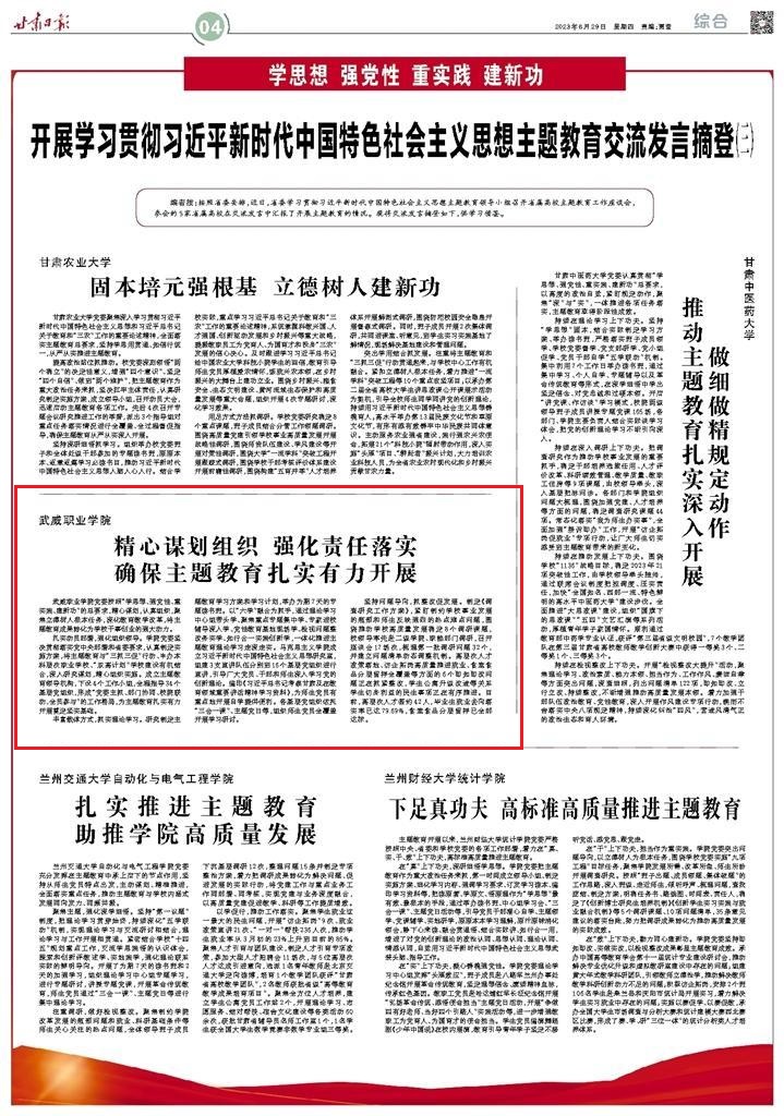甘肅日報刊登學院在省屬高校主題教育工作座談會上的發(fā)言