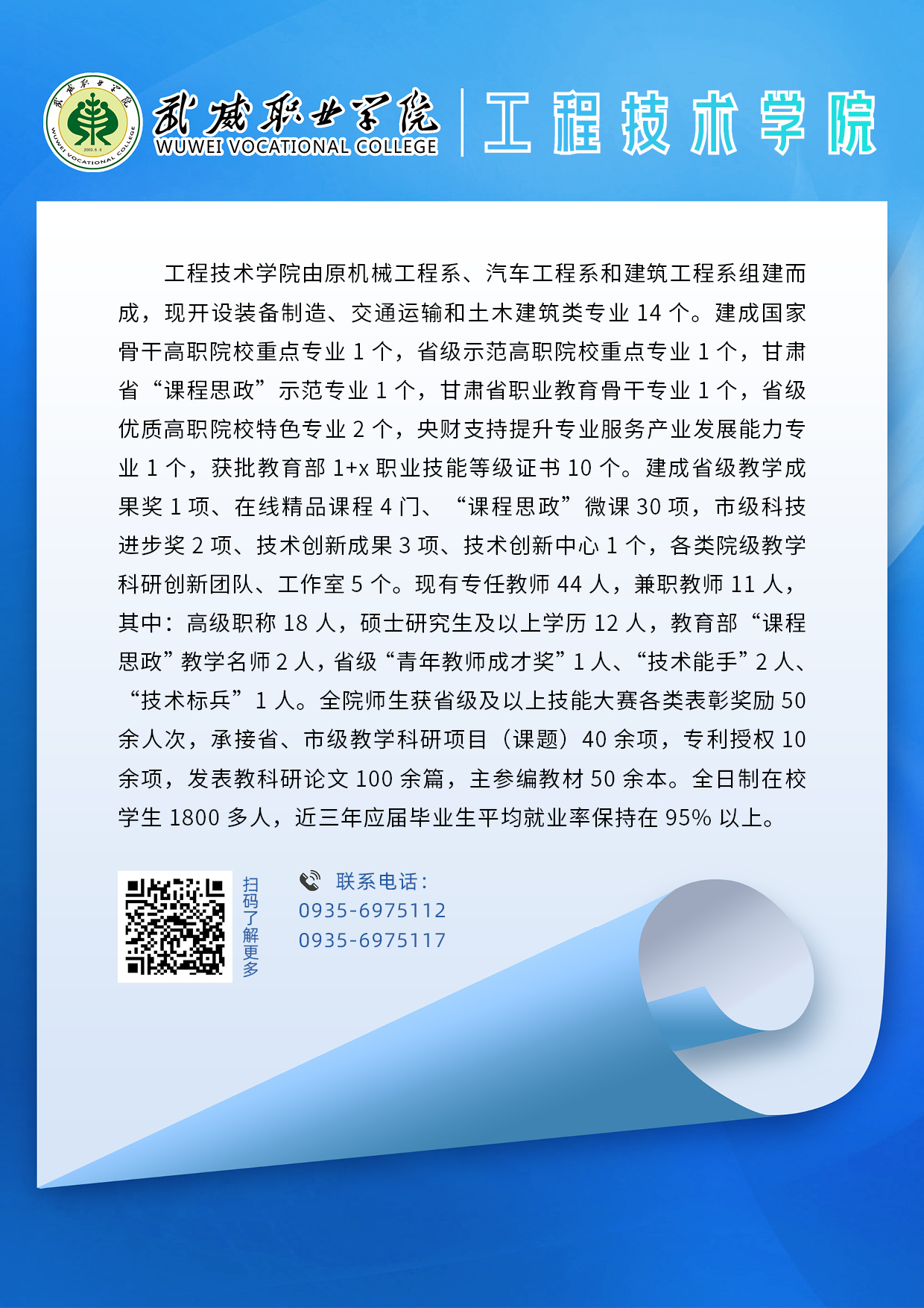 武威職業(yè)學(xué)院二級(jí)學(xué)院專業(yè)簡(jiǎn)介丨工程技術(shù)學(xué)院