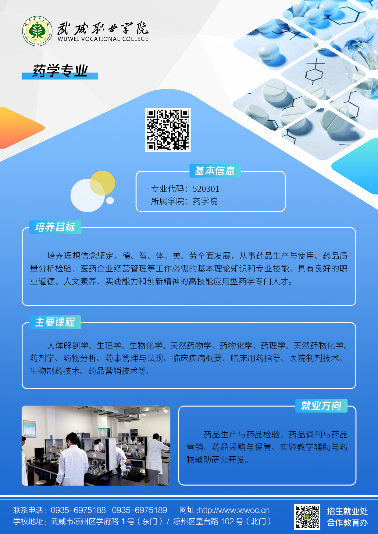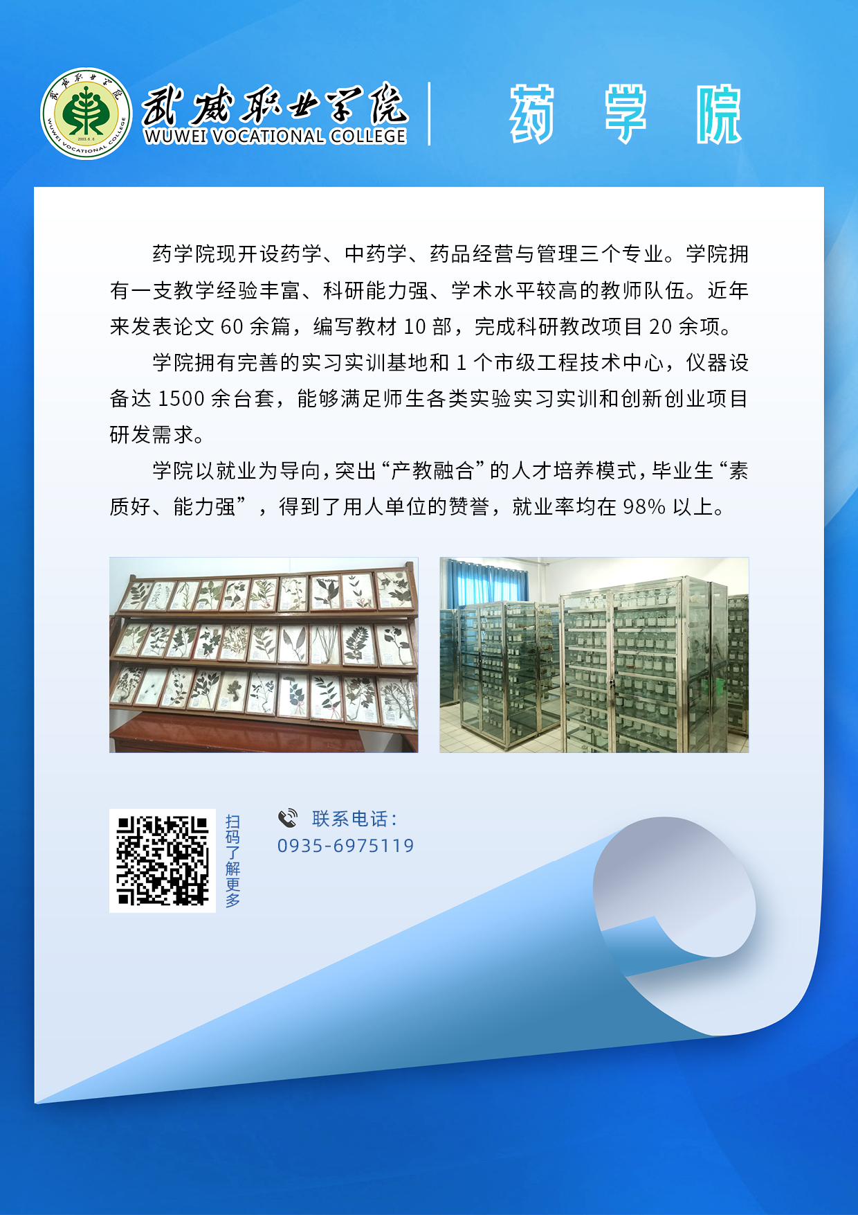 武威職業(yè)學院二級學院專業(yè)簡介丨藥學院