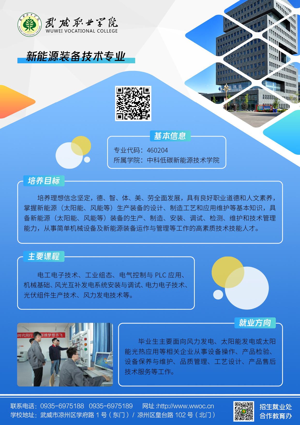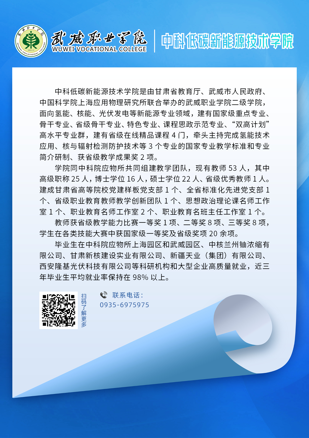 武威職業(yè)學(xué)院二級學(xué)院專業(yè)簡介丨中科低碳新能源技術(shù)學(xué)院