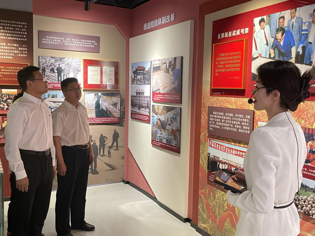 大家在講解員的講解下先后參觀了序廳、主廳、智慧黨建廳、紅色文創(chuàng)廳、尾廳和初心講堂,并觀看了紅色專題片。展廳全景式展現(xiàn)了武威百年輝煌黨史和黨的十八大以來,尤其是習(xí)近平總書記視察甘肅三年以來武威高質(zhì)量發(fā)展的重大成就。在講解員的帶領(lǐng)下,全體黨員重溫了武威的發(fā)展史和中國共產(chǎn)黨人為建設(shè)新中國拋頭顱、灑熱血的崢嶸歲月。大家一邊觀看,一邊聆聽關(guān)于革命先烈的光輝事跡和紅色故事,接受革命傳統(tǒng)教育的洗禮,從黨的百年偉大奮斗歷程中汲取繼續(xù)奮斗前進(jìn)的智慧和力量。