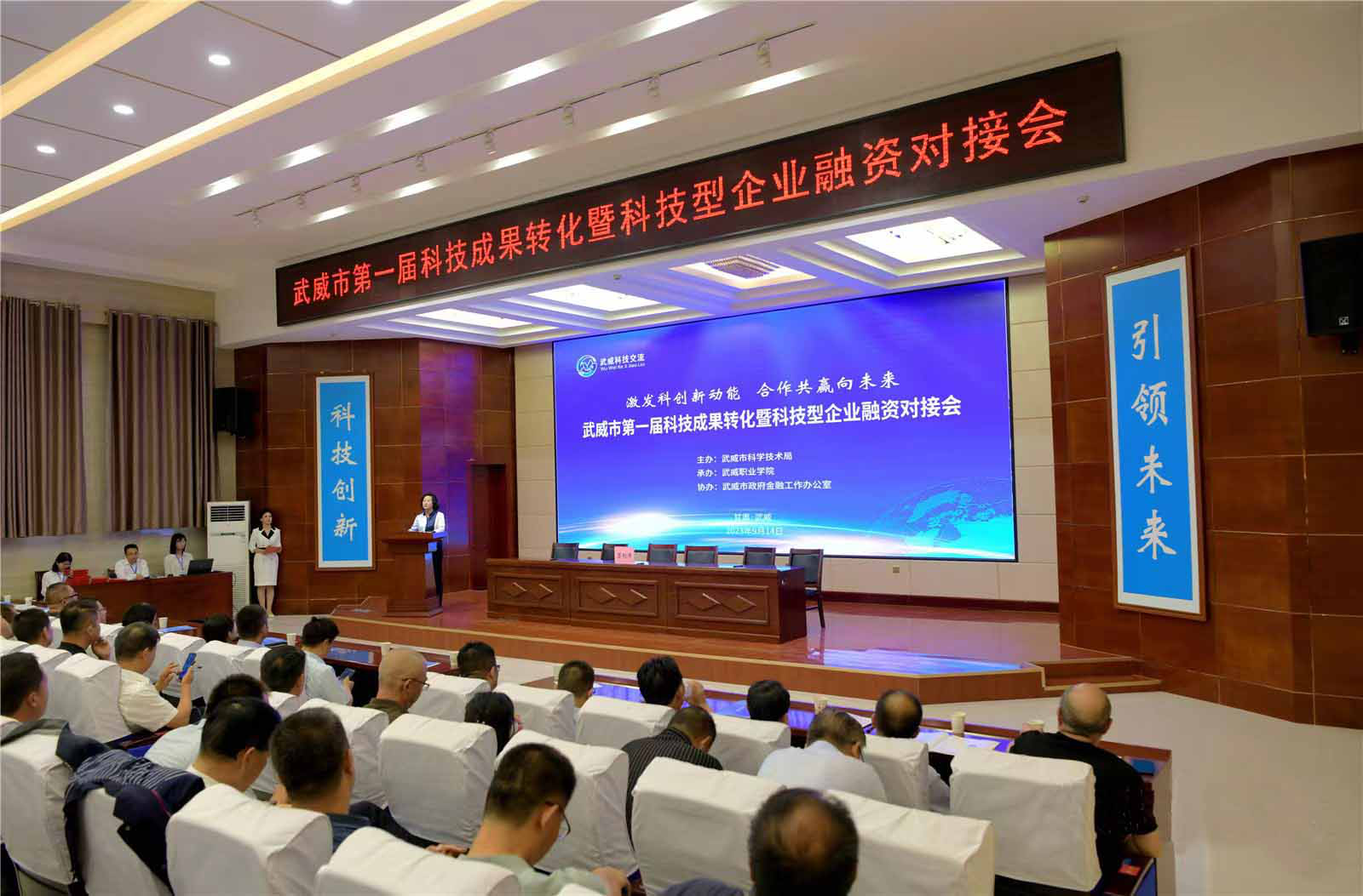 9月14日上午,由武威市科學(xué)技術(shù)局主辦、我校承辦的武威市第一屆科技成果轉(zhuǎn)化暨科技型企業(yè)融資對接會在菁英廳成功舉辦,武威市政府黨組成員、副市長柳生墜,武威市科技局黨組書記、局長高小華出席本次會議,縣區(qū)政府分管領(lǐng)導(dǎo),市直有關(guān)單位,有關(guān)企業(yè)負(fù)責(zé)人等共200人參加會議。