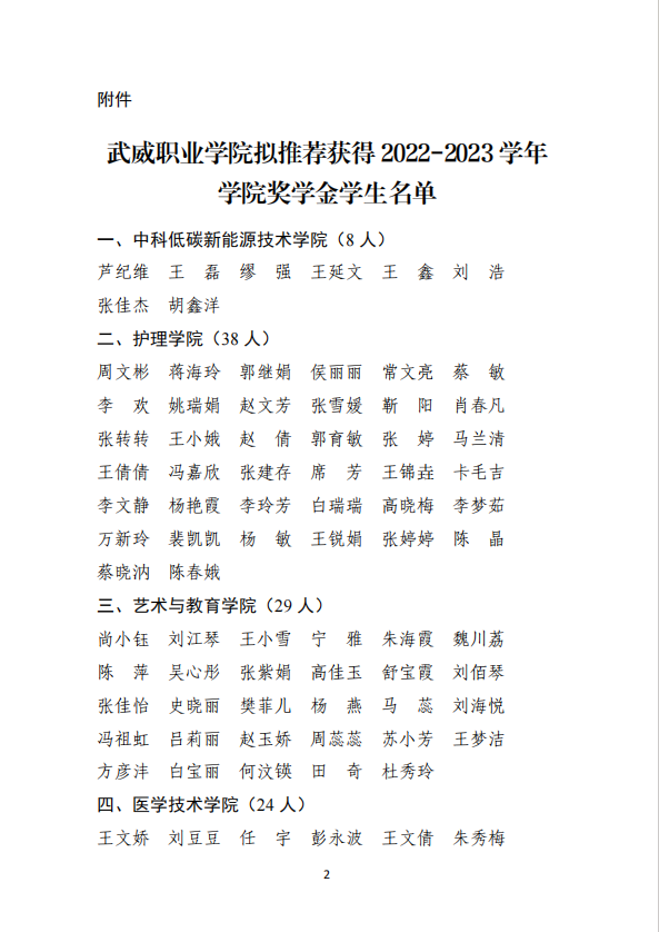 武威職業(yè)學(xué)院關(guān)于2022-2023學(xué)年學(xué)院獎學(xué)金評選結(jié)果的公示