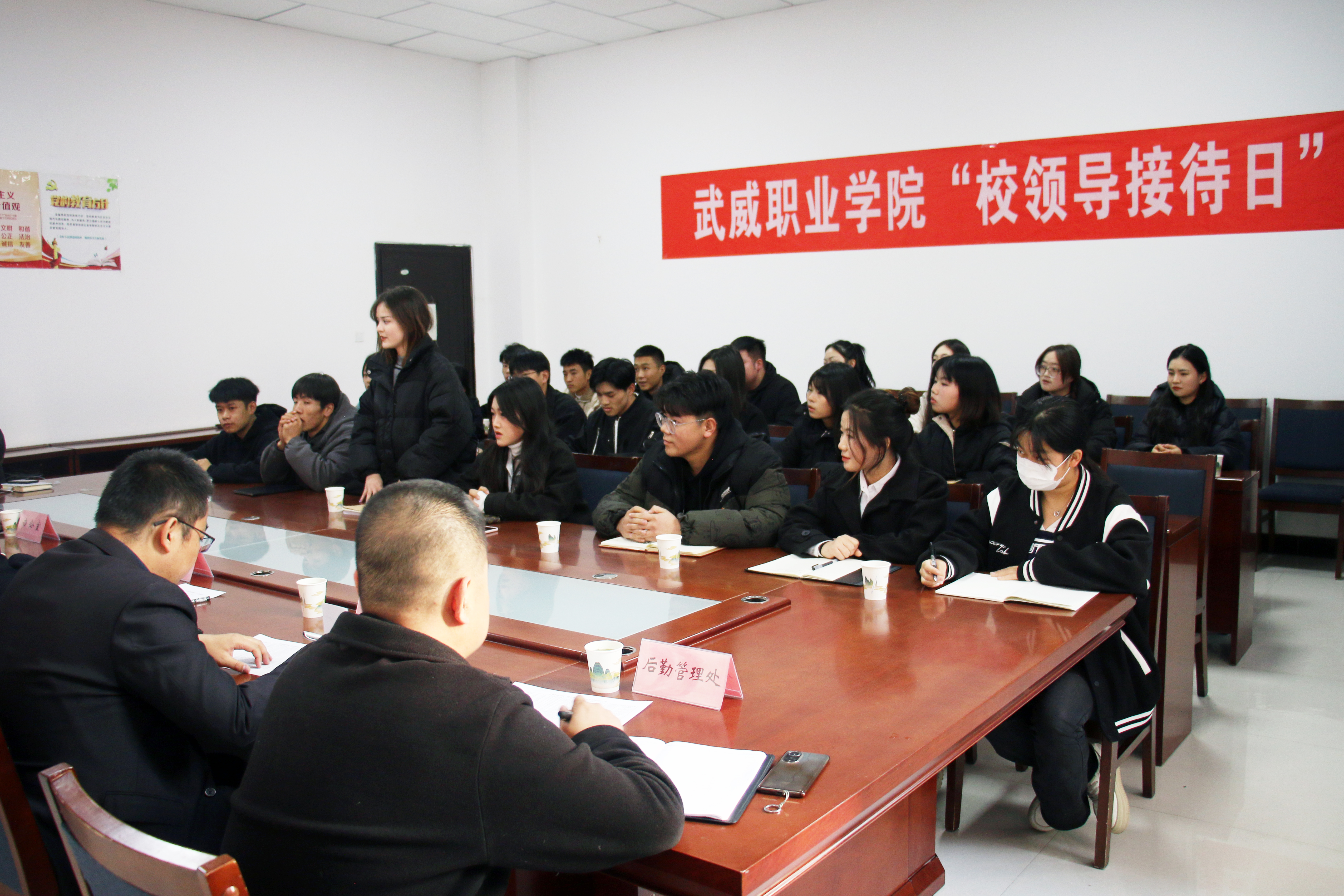 為切實做好“四下基層”工作,保障學生權益,進一步營造民主和諧的校園氛圍,提高校園服務質量和管理水平,學校于11月24日下午在學生發(fā)展中心103會議室舉辦了2023-2024學年第一期“校領導接待日”活動。校長、黨委副書記張開禮與來自各二級學院的22名學生代表進行了親切交流,辦公室、教務處、學生工作處、后勤管理處等相關部門負責人參加了活動。