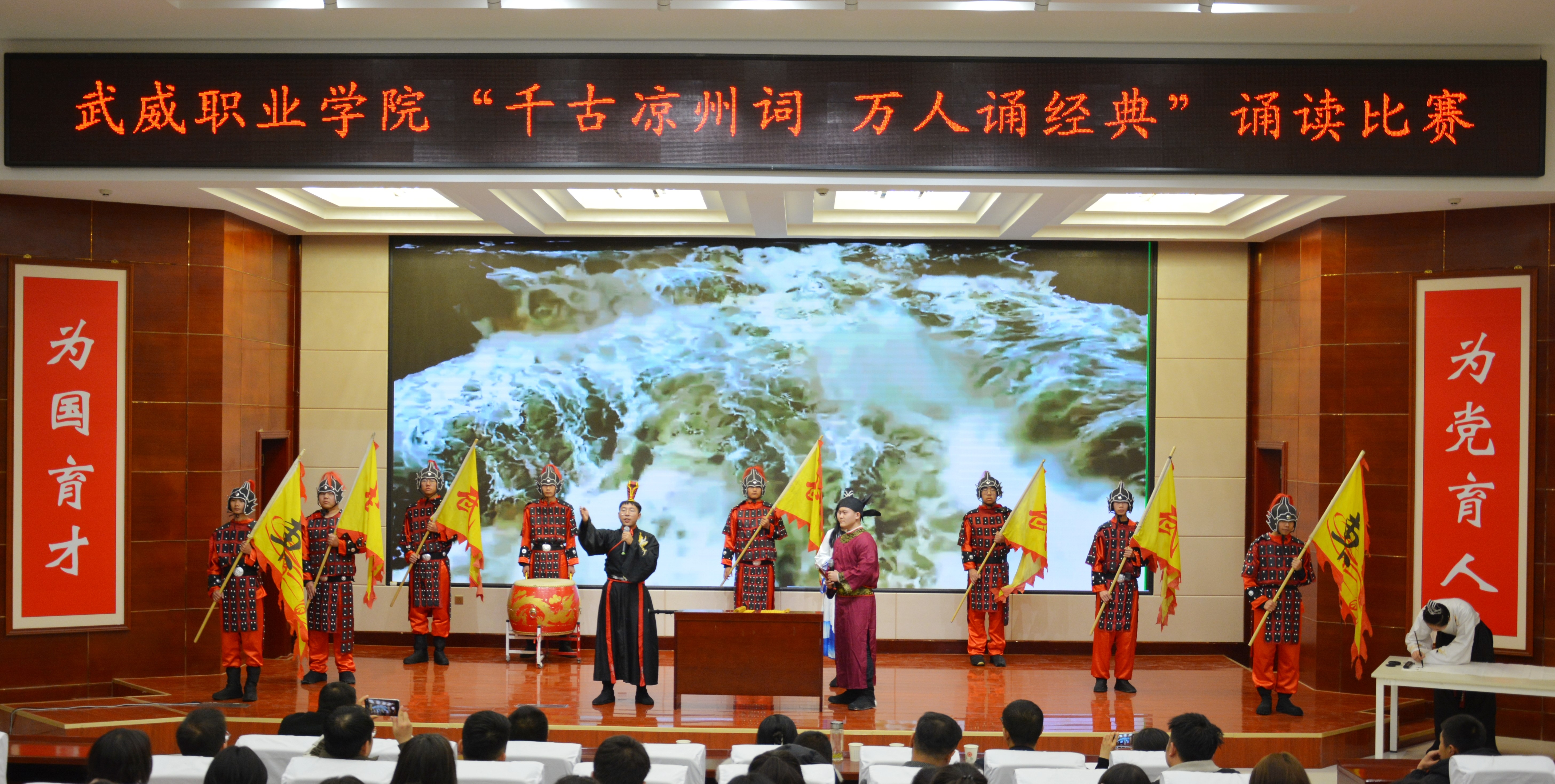 學(xué)校堅持“以文育人、以文化人”,圍繞“傳承涼州文脈,賦能文化自信”主題,以中華優(yōu)秀傳統(tǒng)文化為底蘊基石,以涼州文化為重要依托,打造出一系列根植地域文化的校園特色文化品牌活動,多舉措豐富文化育人內(nèi)涵,推動文化育人提質(zhì)增效,激勵武職學(xué)子凝心聚力續(xù)寫涼州豪放詞,篤定前行再譜武職新華章,全力為學(xué)校發(fā)展貢獻青春力量!