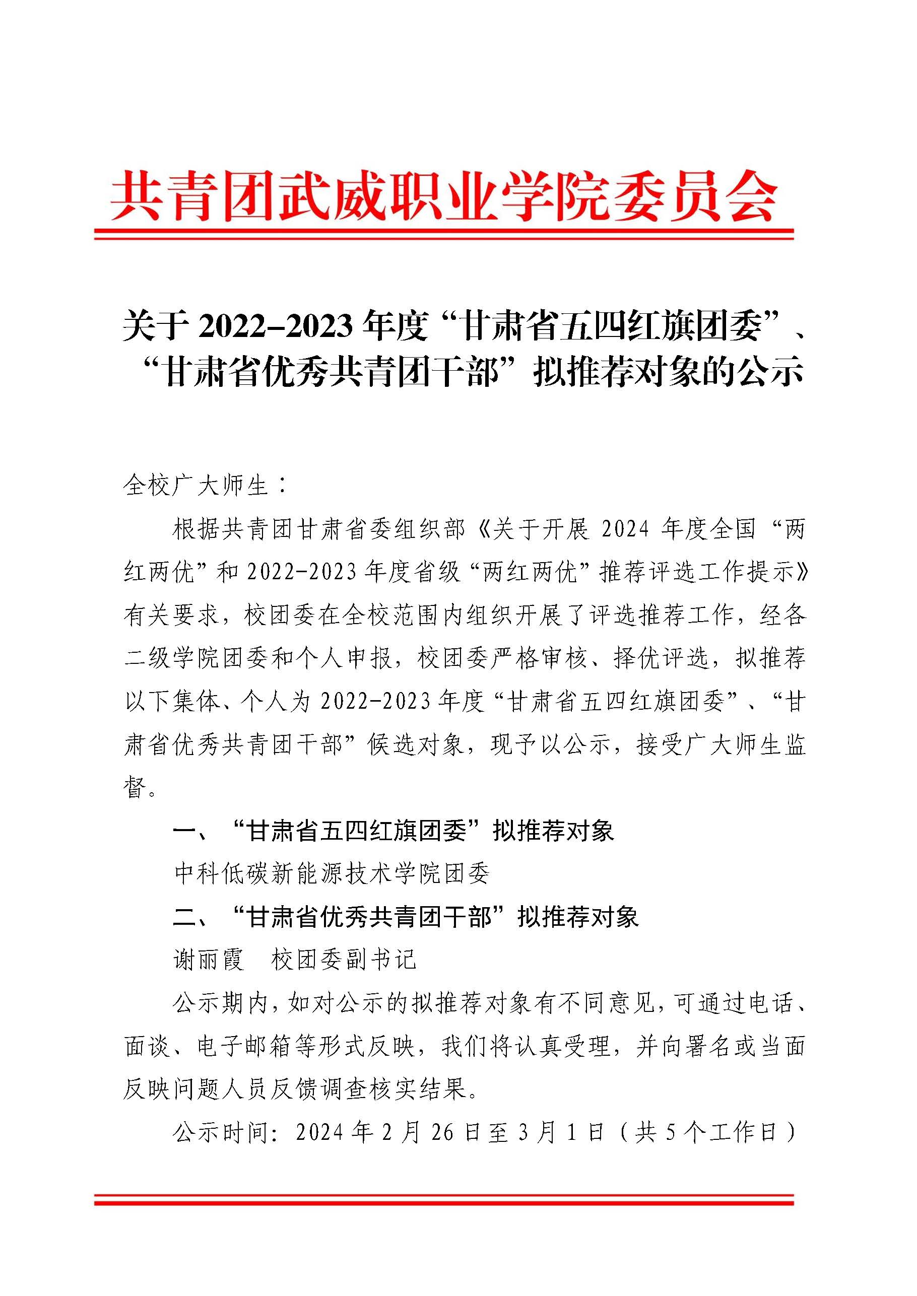 關(guān)于2022-2023年度“甘肅省五四紅旗團(tuán)委”、“甘肅省優(yōu)秀共青團(tuán)干部”擬推薦對(duì)象的公示